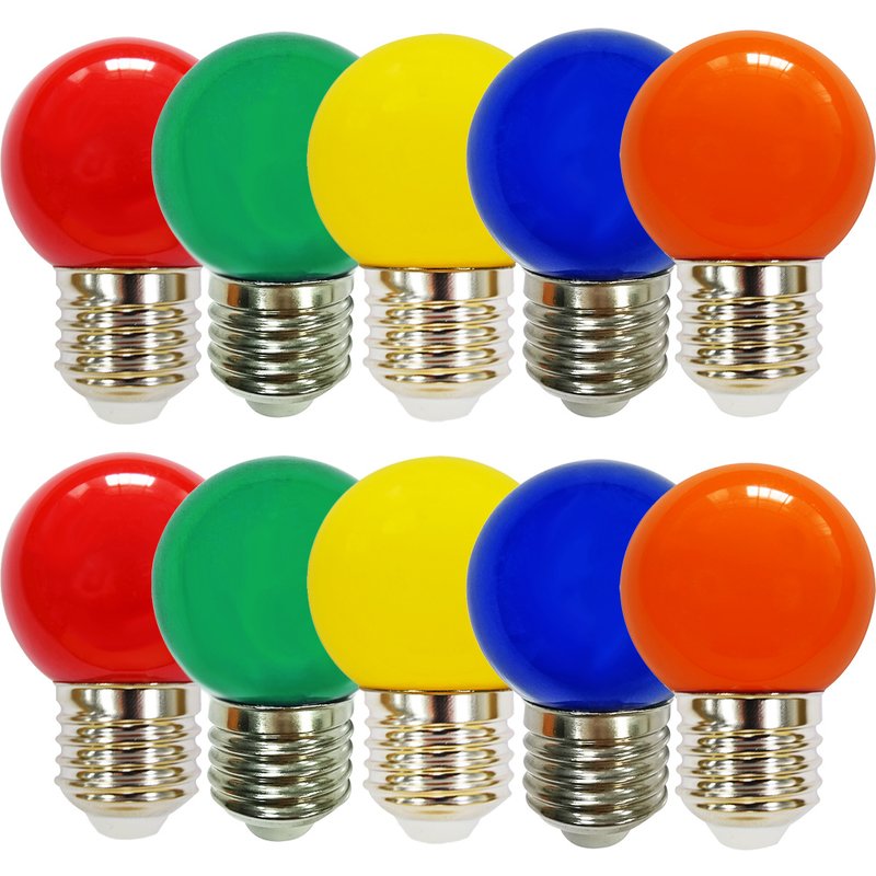 10 Bunten x LED-Leuchtmittel Rot, Grün, Blau, Orange und Gelb, G45, E27, 2W, Glas, für Außen