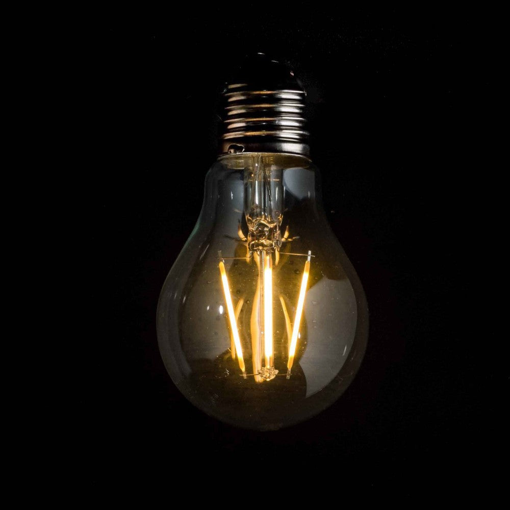 Birne mit 4 LED Filament A60, E27, 4W, Kunststoff, Dimmbar, 75lm/W, Warm Licht, für Außen