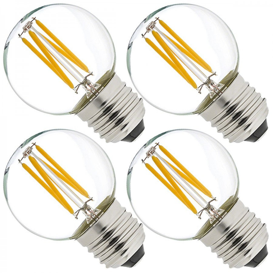 Birne mit 4 LEDs Filament G45, E27, 6W, Kunststoff, Dimmbar, Warm Licht, für Außen