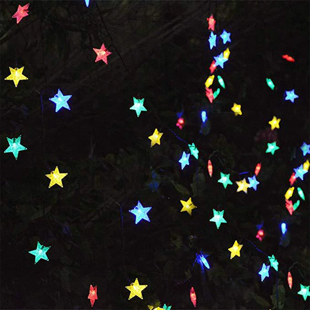 Bunte Solar Lichterkette 3M mit 20 Sternen-LEDs, Dunkelgrün Kabel, Mehrfarbige Licht, für Außen