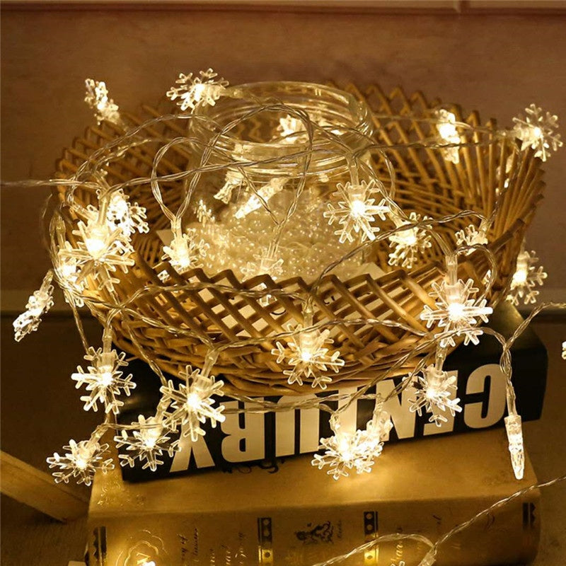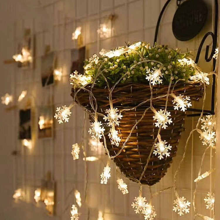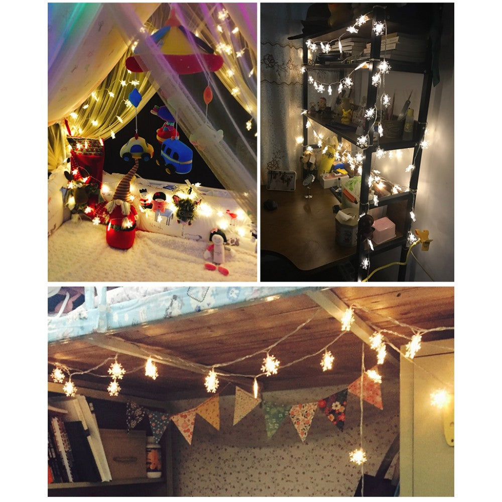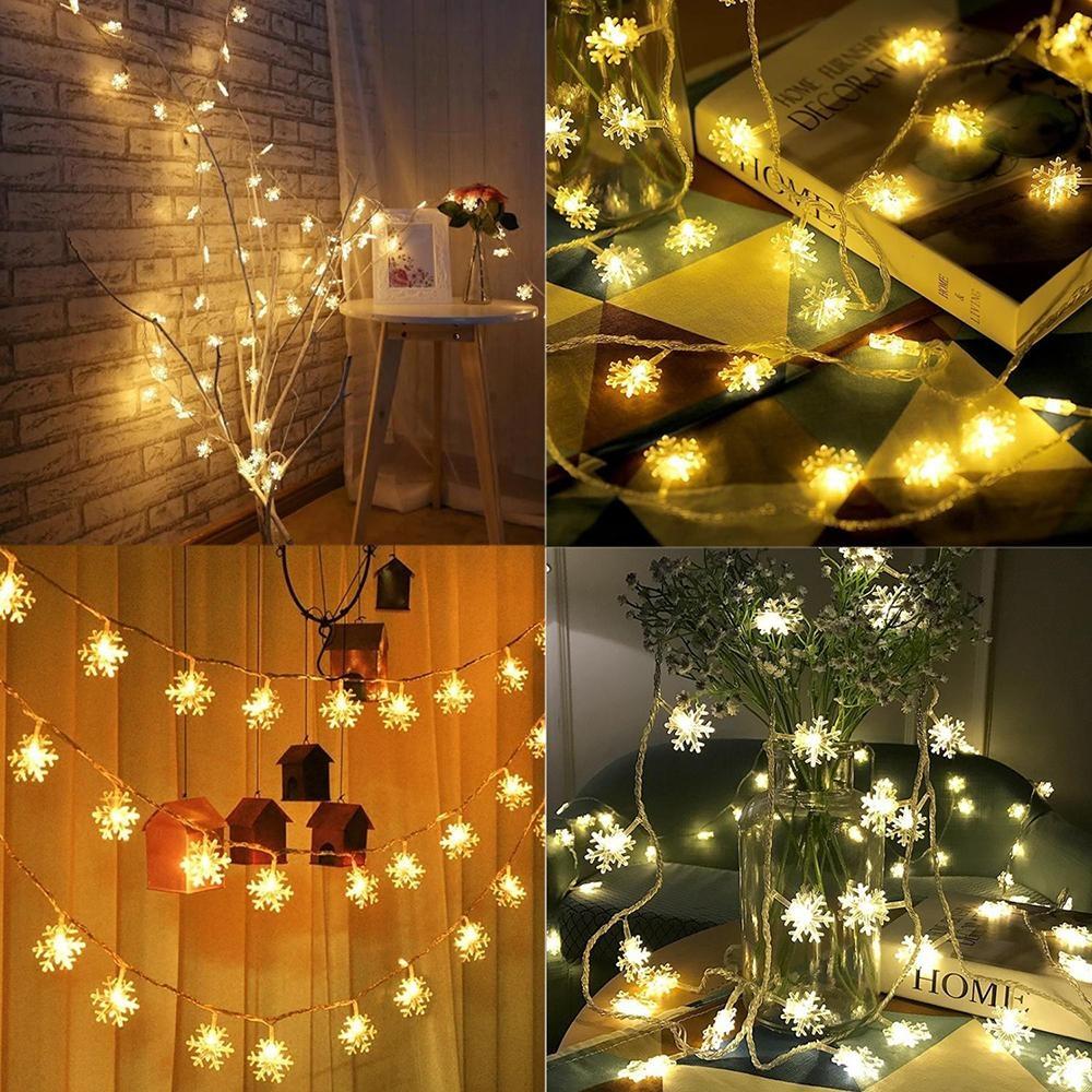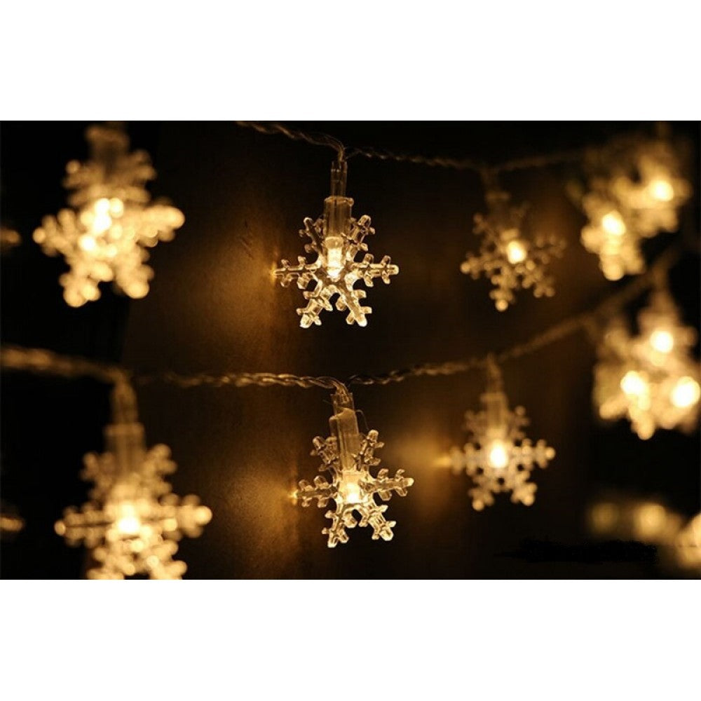 Dekorative Lichterkette 20M mit 200 Schneeflocken-LEDs, Warm Licht, Verbindbar 80M, Für Außen