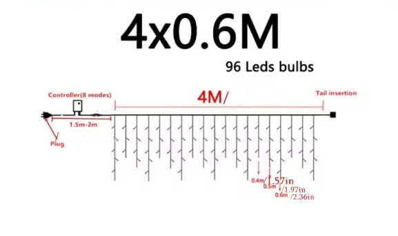 Eiszapfen Schneeflocke Fenster Vorhang 4M x 0.6M mit 96 LEDs, Durchsichtig Kabel, Warm Licht, Verbindbar 24M, für Außen- Standardlänge: 4... Lesen Sie mehr