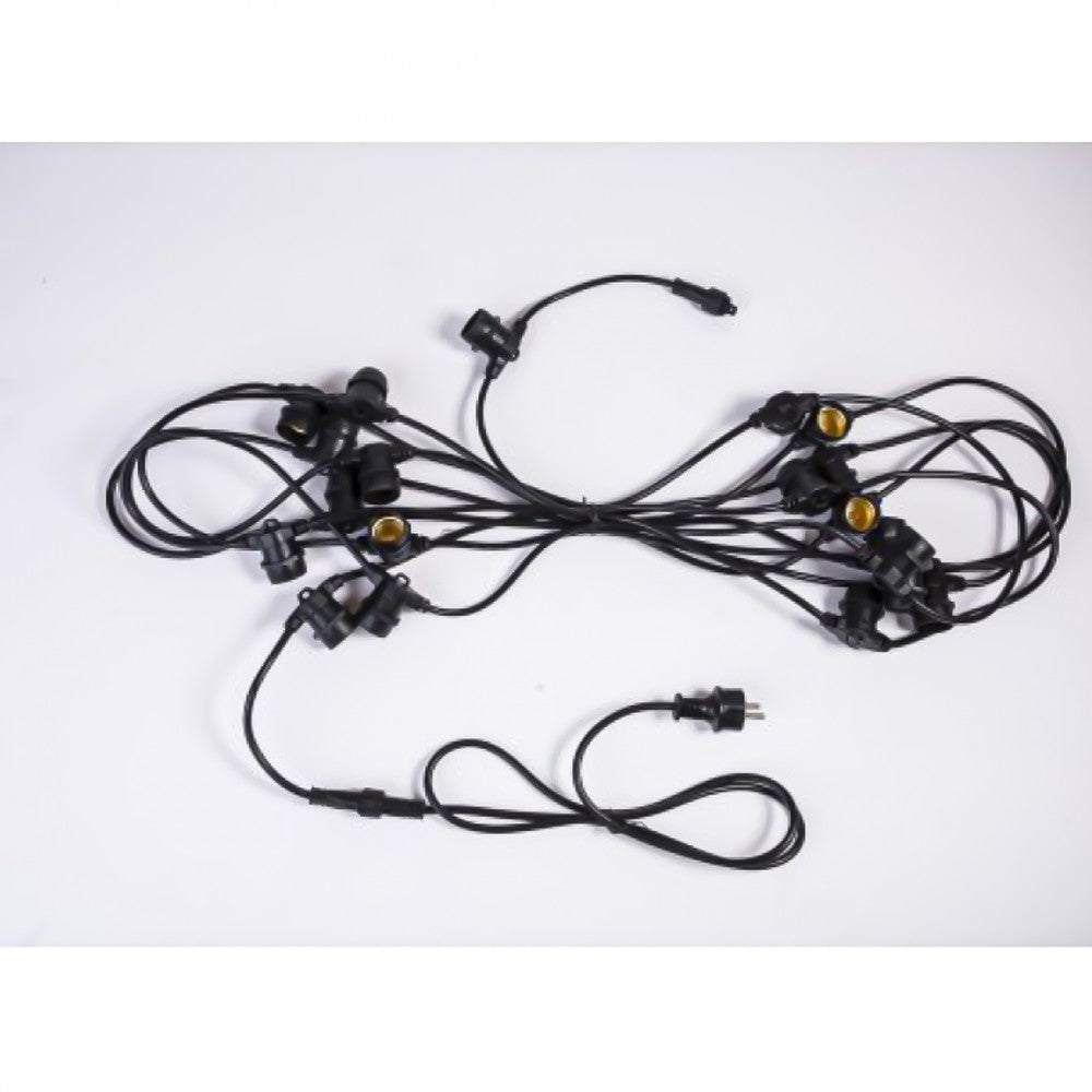Kabel 10M mit 10 Fassungen E27, Schwarzes Kabel 2 x 0.75mm², Verbindbar max. 1000W, für Außen