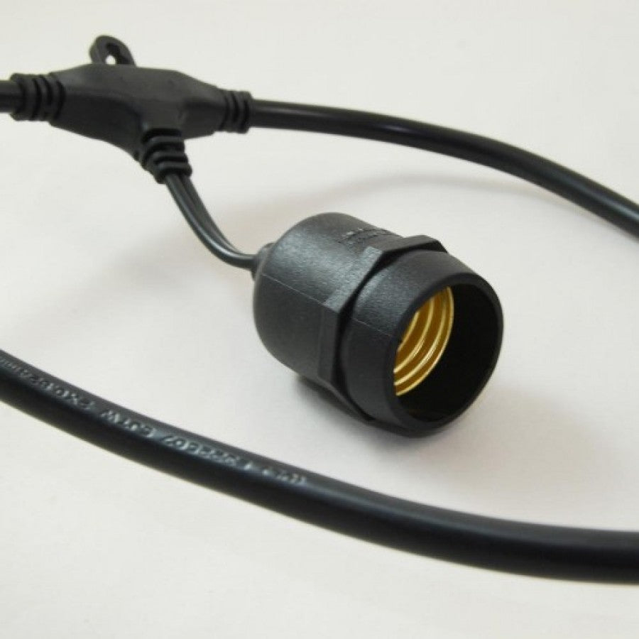 Kabel 10M mit 10 Pendel Fassungen E27, Schwarzes Kabel, Verbindbar max. 1000W, für Außen