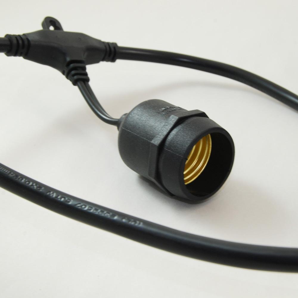 Kabel 10M mit 20 Pendel Fassungen E27, Schwarzes Kabel, Verbindbar max. 1000W, für Außen