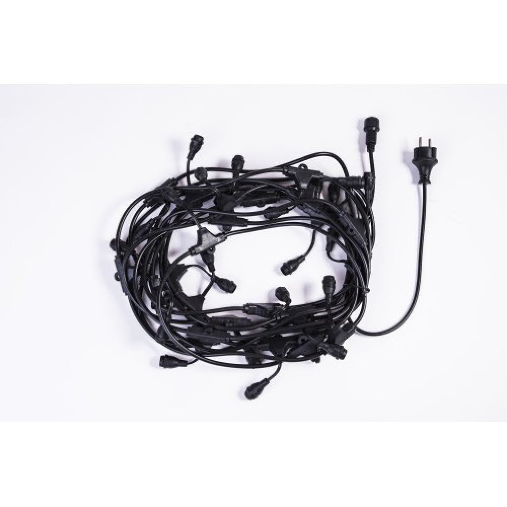 Kabel 10M mit 25 Pendel Fassungen E12, Schwarzes Kabel, Verbindbar 900W, für Außen