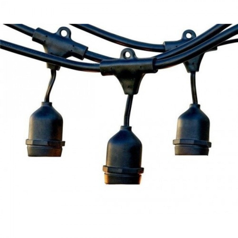 Kabel 15M mit 15 Pendel Fassungen E27, Schwarzes Kabel, Verbindbar max. 1000W, für Außen
