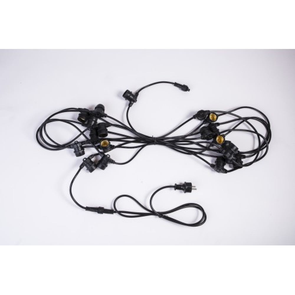 Kabel 15M mit 24 Fassungen E27, Schwarzes Kabel, Verbindbar max. 1000W, für Außen
