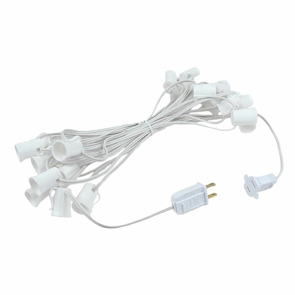 Kabel 7,5M mit 25 Fassung E12, Weißes Kabel, Verbindbar max. 700W, für Außen