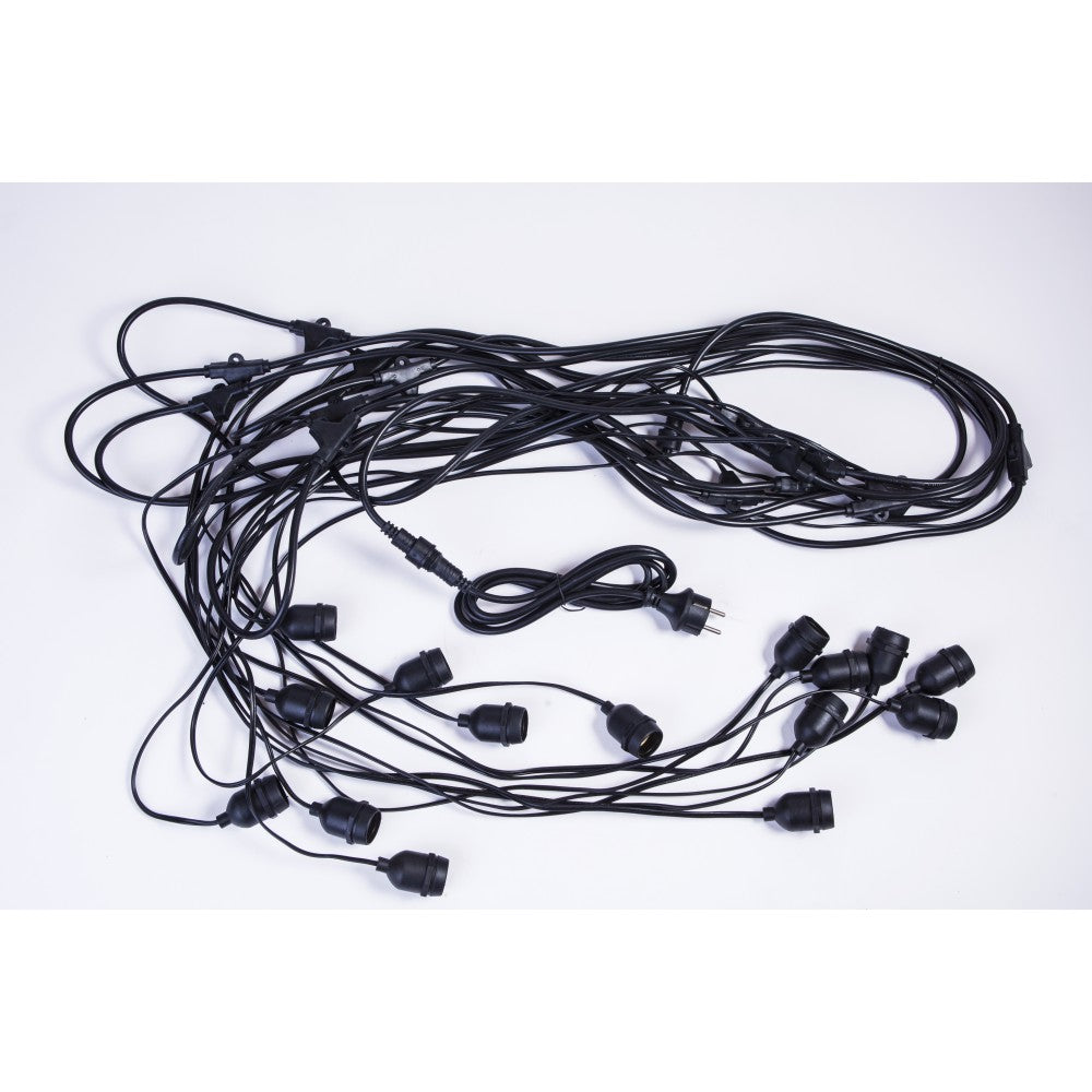 Kabel mit Pendel 15M mit 15 Fassungen E27, Pendellänge 1M, Schwarzes Kabel, Verbindbar 1500W, für Außen