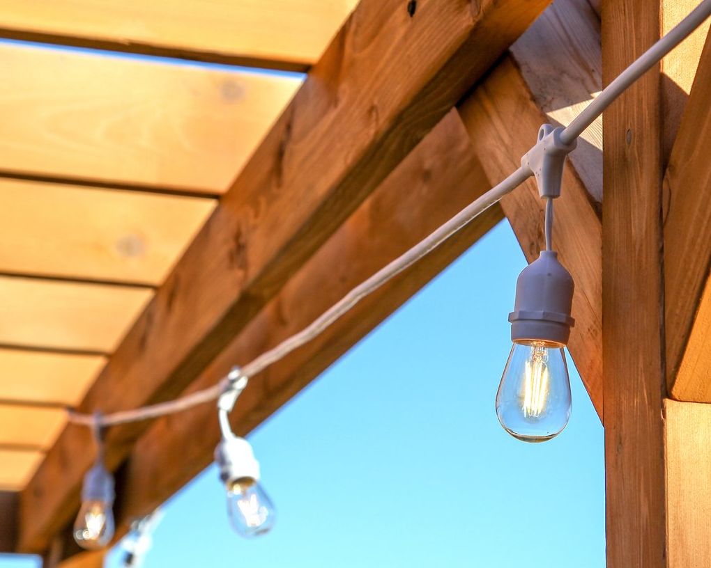 Kabel mit Pendel 15M mit 15 Fassungen E27, Weißes Kabel, Verbindbar max. 1000W, für Außen