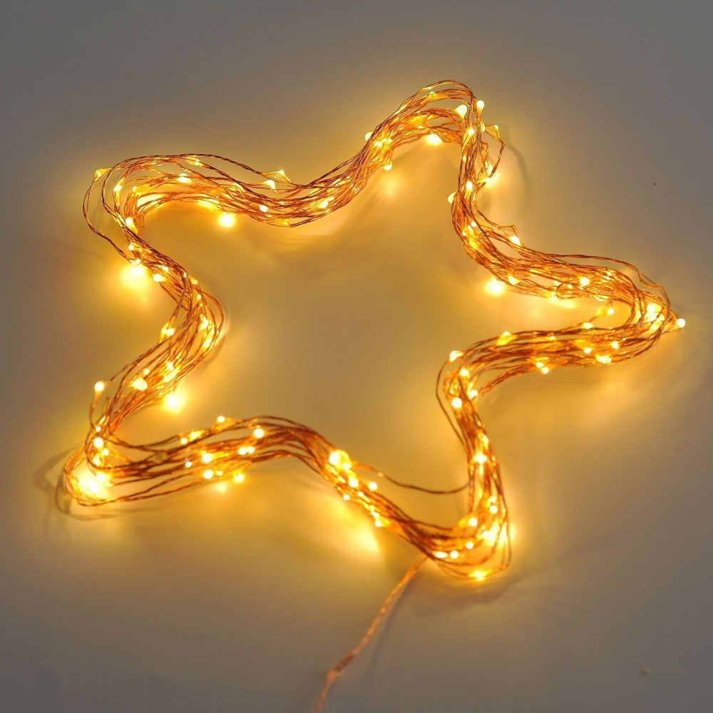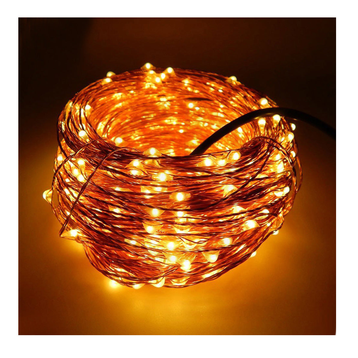 Kupfer Drahtlichterkette 20M mit 200 Mini-LEDs mit Transformator, Warm Licht, für Außen