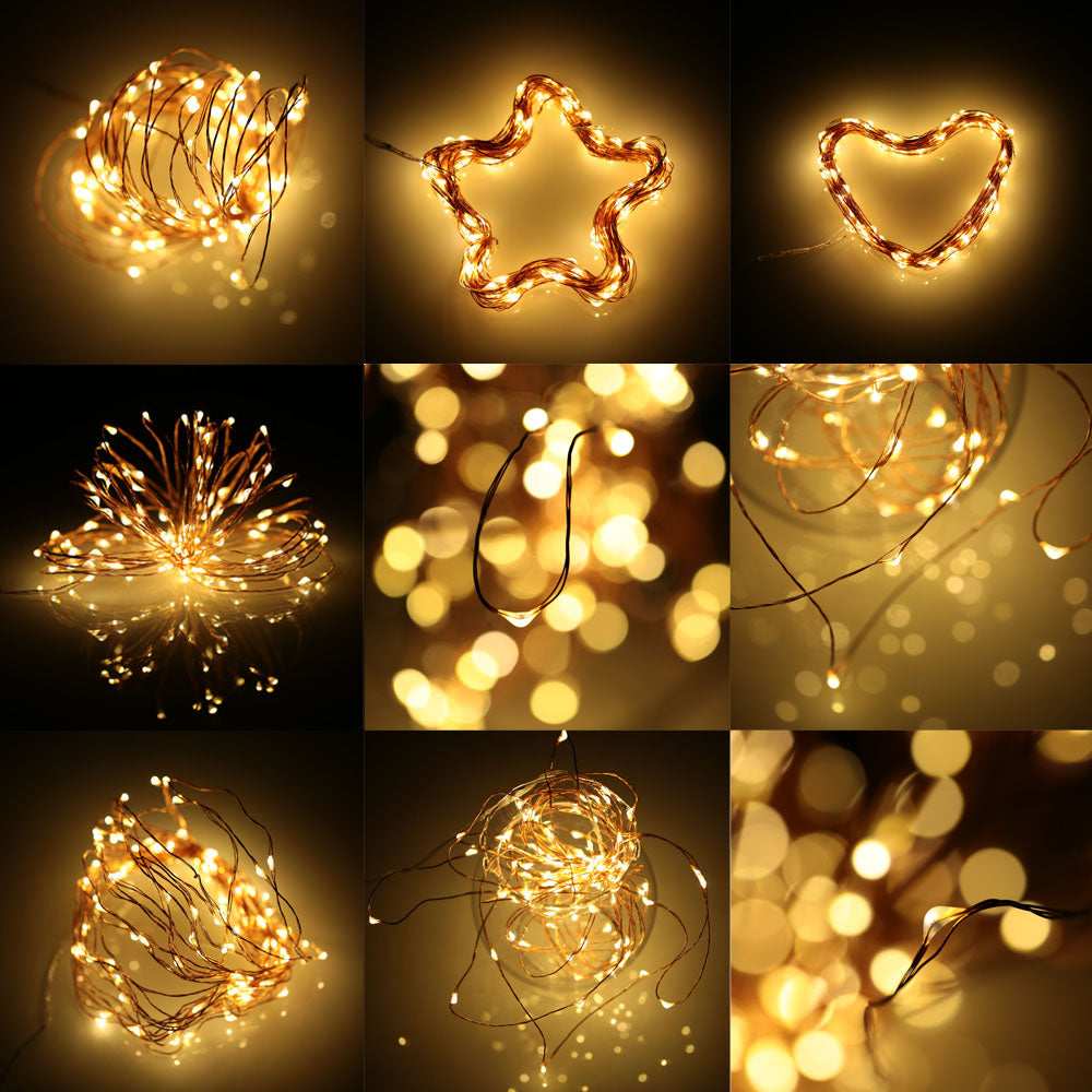 Kupferdraht Lichterkette 20M mit 200 Mini-LEDs mit 8 Programmen, Batteriebetrieb und Fernbedienung, Warm Licht, für Außen