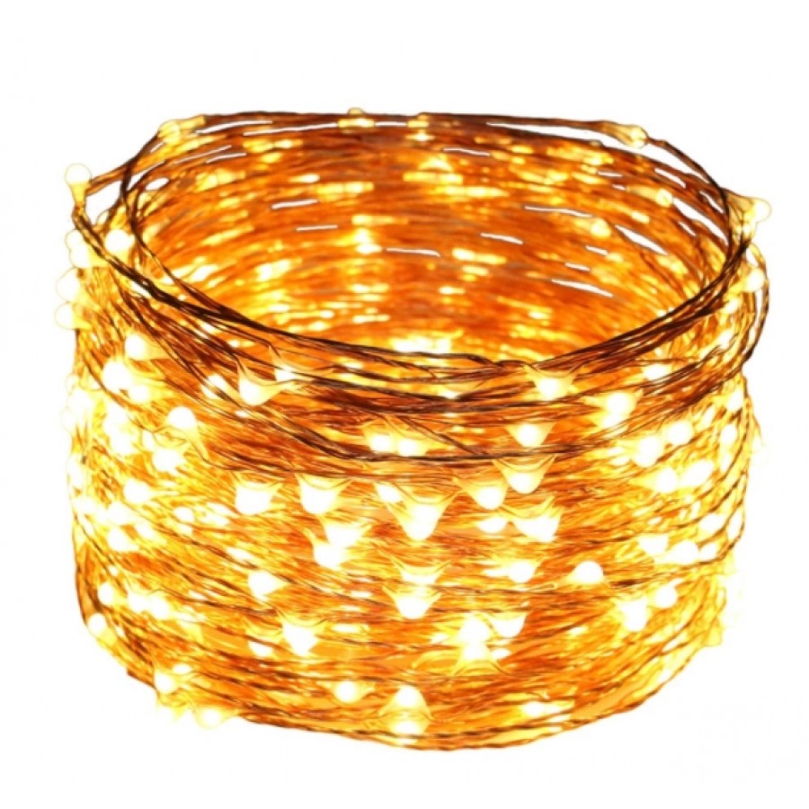 Kupferdraht Lichterkette 30M mit 300 Mini-LEDs mit Transformator, Warm Licht, für Außen