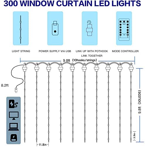 Kupferdraht Lichtervorhang 3M × 3M, 300 LEDs mit 10 Haken, USB und Fernbedienung, mit 8 Programmen, Warm Licht, für Außen-... Lesen Sie mehr