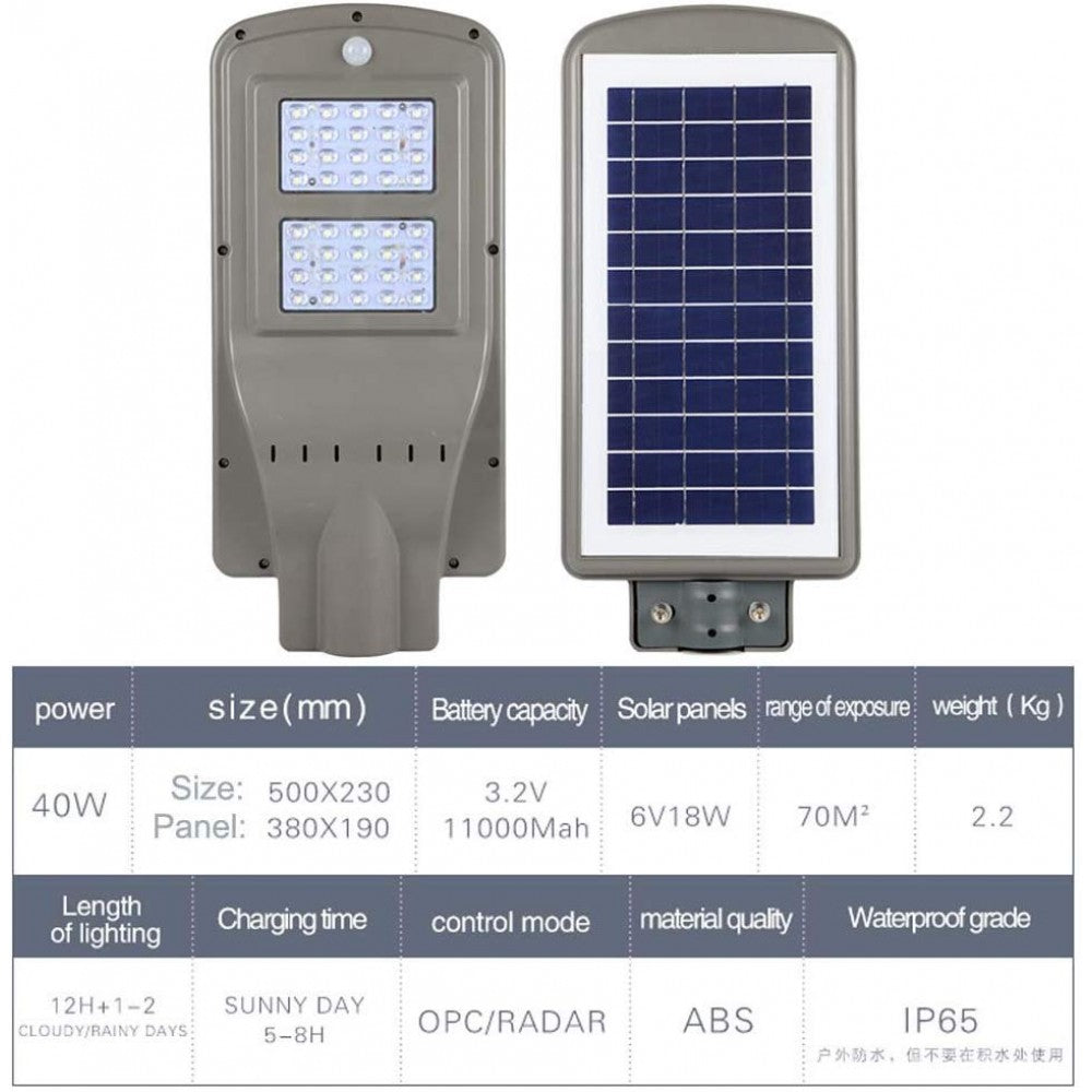 LED Solar Flutlicht mit Bewegungssensor 40W, Straßenbeleuchtung mit Kaltes Licht, für Außen- Der Straßenbeleuchtung-Gehäuse besteht aus einem Anti-Rostend ABS von... Lesen Sie mehr
