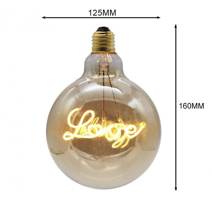 Leuchtmittel LOVE Filament G125, E27, 4W, Glas, Dimmbar, Warm Licht, für Außen