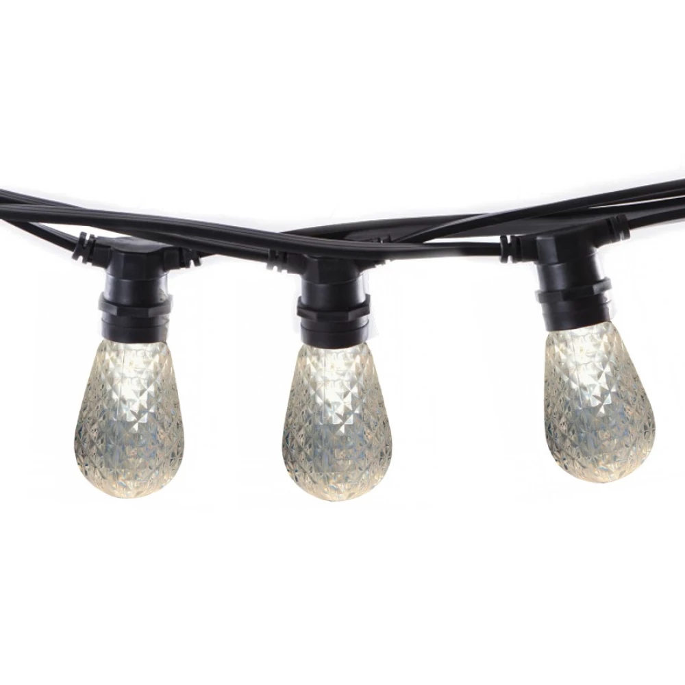 Lichterkette 10M mit 10 Vintage Boho Kristall Leuchtmitteln E27, 1W, Dimmbar, Warm Licht, Verbindbar max. 1000W, für Außen