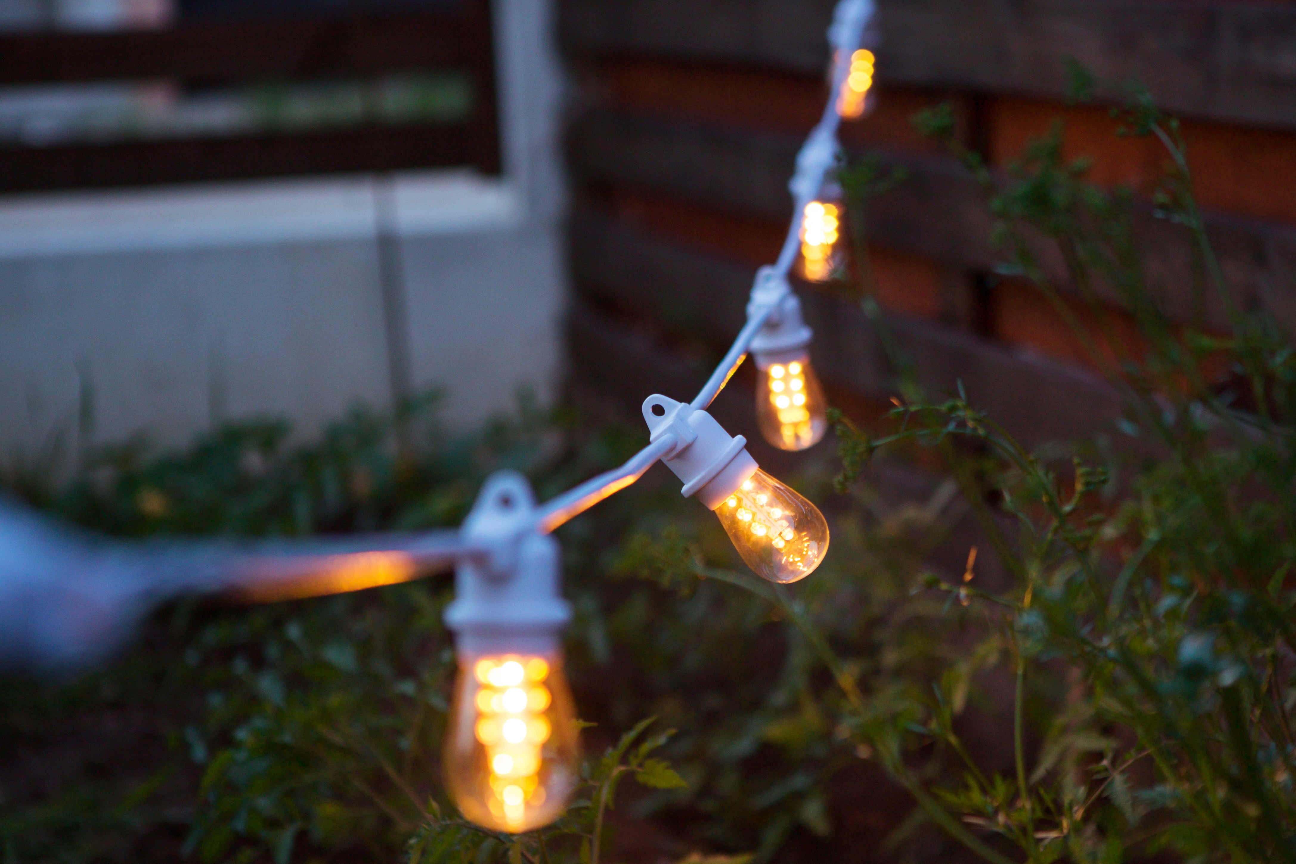 Lichterkette 10M mit 20 LED-Birnen, E27, 2W, Glas, Schwarzes Kabel, Verbindbar 250M, für Außen