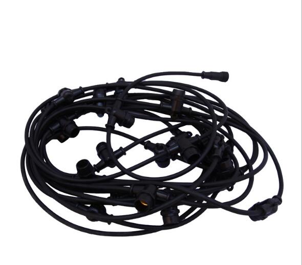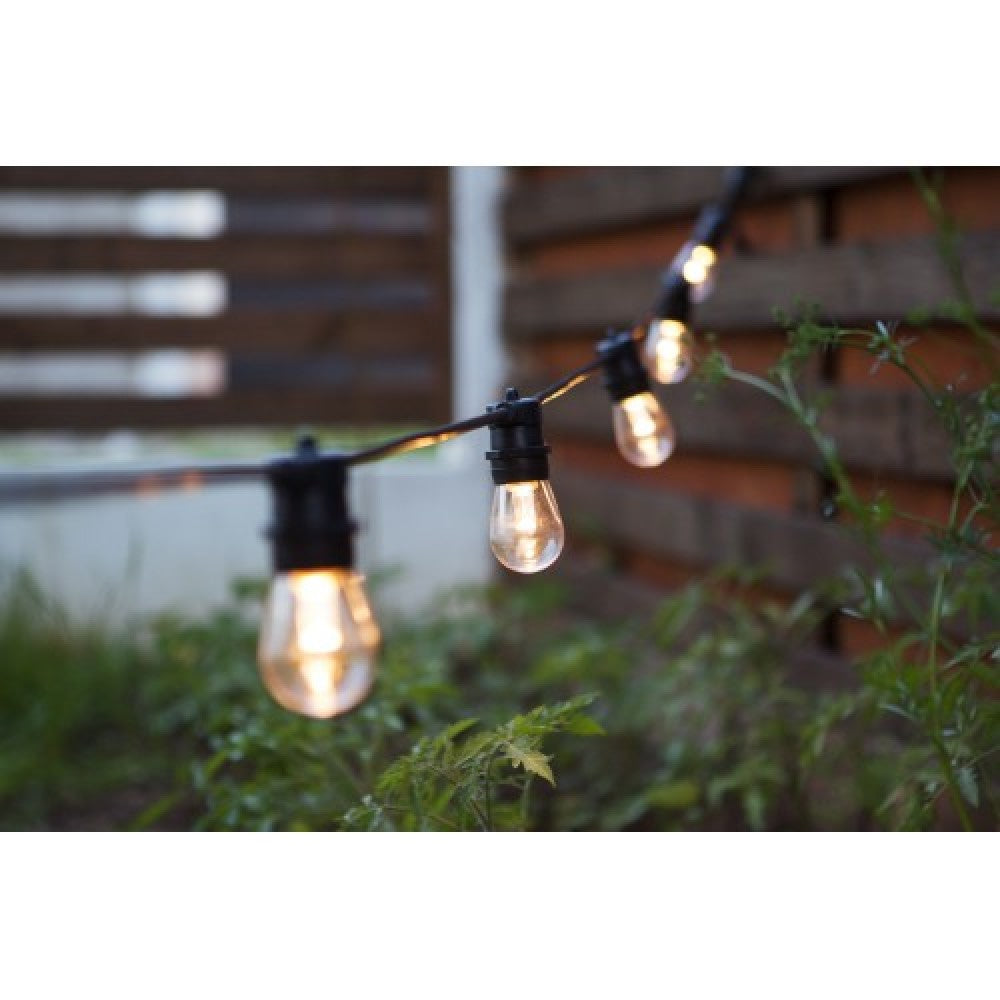 Lichterkette 10M mit 20 LED-Birnen E27, 2W, Kunststoff, Dimmbar, Schwarzes Flachkabel/Rundkabel, Verbindbar 250M, für Außen