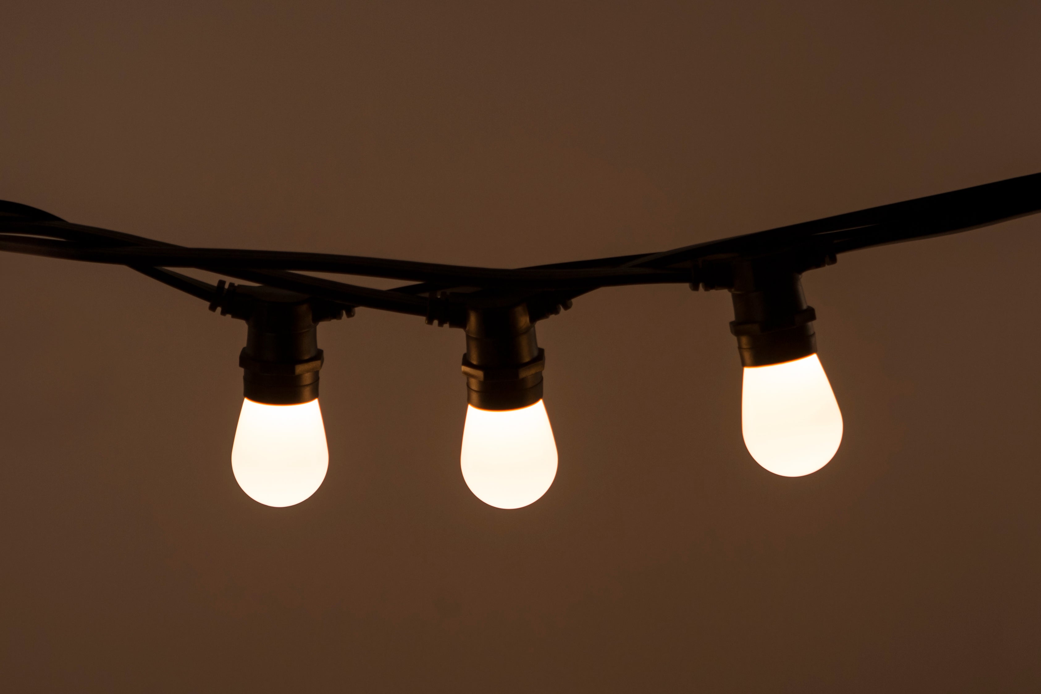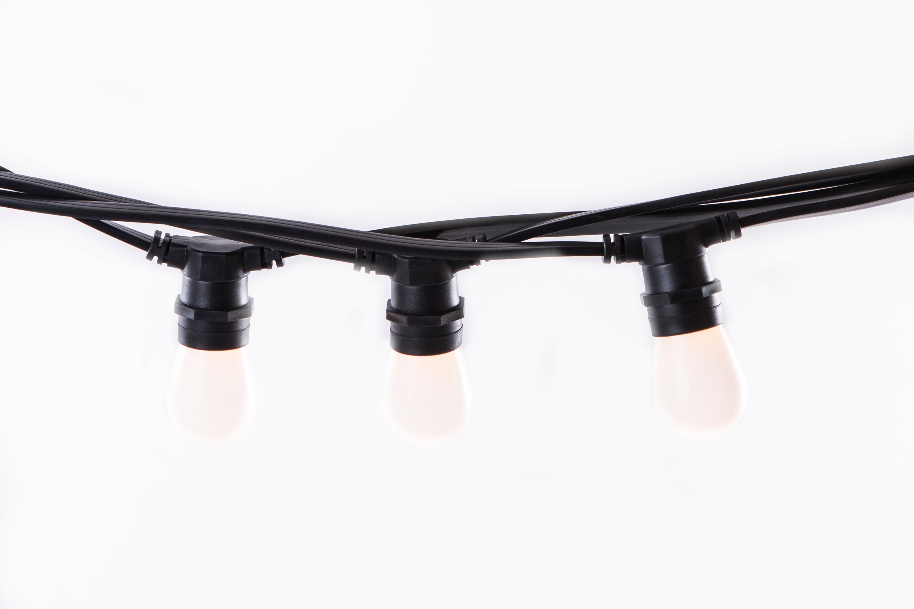 Lichterkette 10M mit 20 Mattweiß Birnen-LEDs E27 1W, Dimmbar, Schwarzes Flachkabel/Rundkabel, Warm Licht, Verbindbar 500M, für Außen