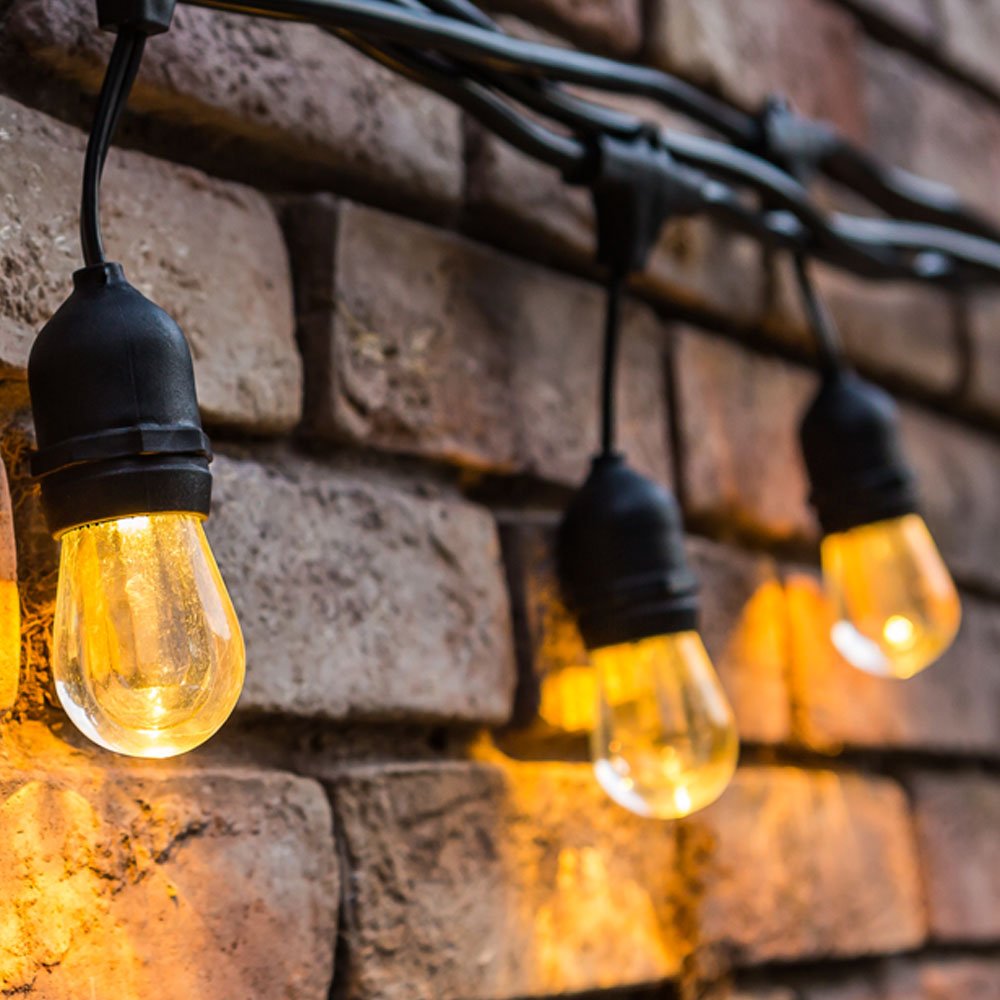 Lichterkette 10M mit 20 Pendel LED-Birnen, E27, 2W, Kunststoff, Dimmbar, Schwarzes Kabel, Verbindbar 250M, für Außen