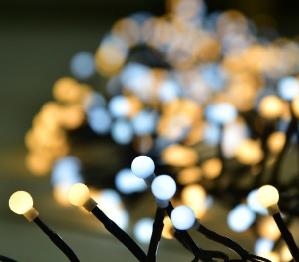 Lichterkette 10M mit 400 Kügelchen-LEDs, 8 Programmen, Schwarzes Kabel, Warm und Kalt Licht, Strombetrieb, für Außen