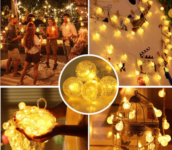 Lichterkette 10M mit 80 LED-Kugeln, 8 Modi und Fernbedienung, Warm Licht, Batteriebetrieb für Außen
