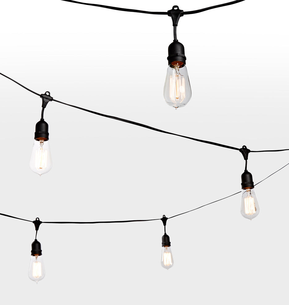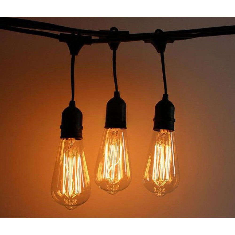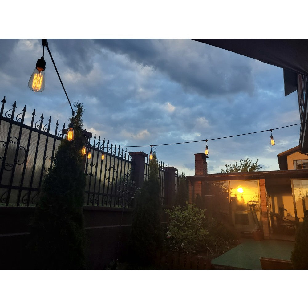 Lichterkette 15M mit 15 Pendel Glühbirnen E27, 25W, Glas, Dimmbar, Schwarzes Kabel, Warm Licht, Verbindbar 60M, für Außen