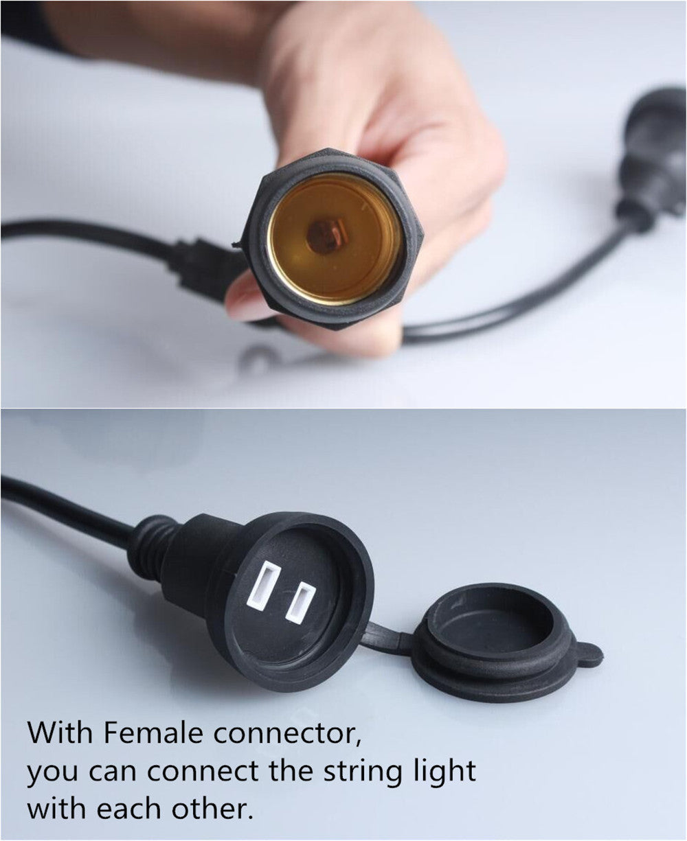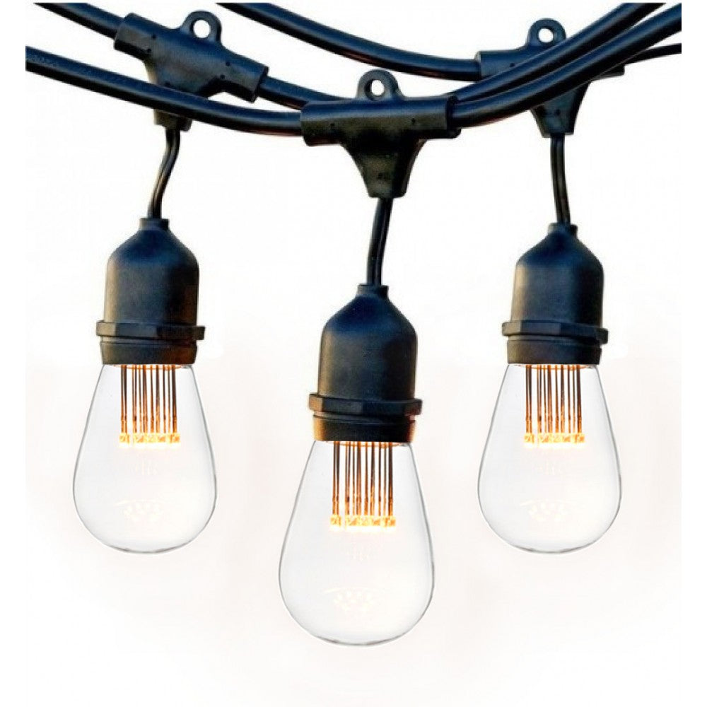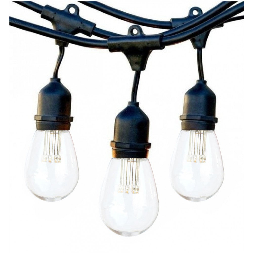 Lichterkette 15M mit 15 Pendel LED-Birnen, E27, 1W, Schwarzes Kabel, Verbindbar 650M, für Außen