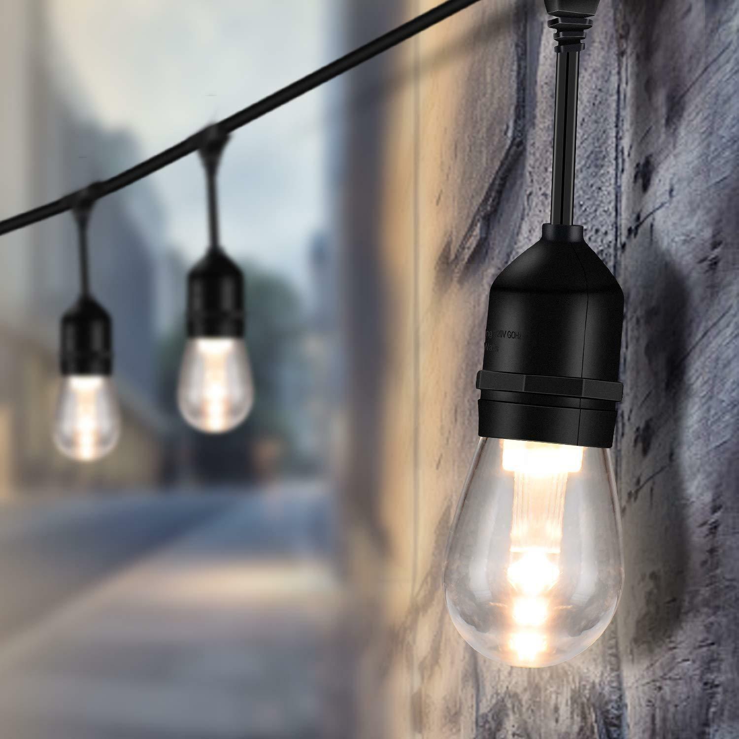 Lichterkette 15M mit 15 Pendel LED-Birnen, E27, 2W, Kunststoff, Dimmbar, Schwarzes Kabel, Verbindbar 500M, für Außen