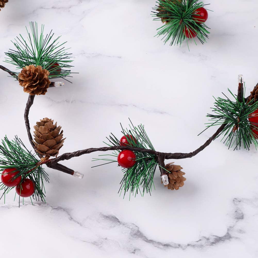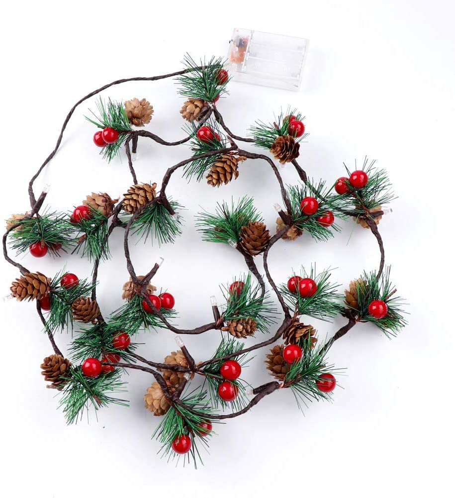 Tannenzapfen-Lichterkette 2M mit 20 LEDs mit kleinen roten Beeren und Glocken dekoriert, Warm Licht, Batteriebetrieben- Standardlänge: 2 m- 20 warmweißen... Lesen Sie mehr