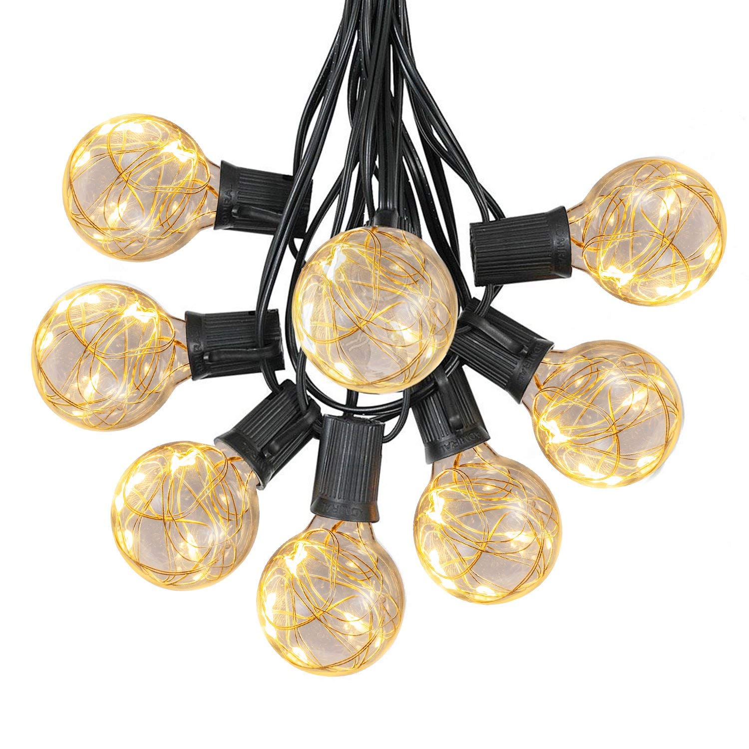 Lichterkette 3,5M mit 12 LED-Lampen E12, Schwarzes Kabel, Verbindbar 14M, für Außen