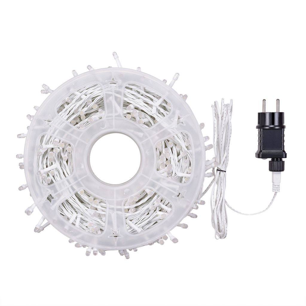 Lichterkette 50 m mit 500 LEDs, Warm Licht, Weißes Kabel, für den Außenbereich