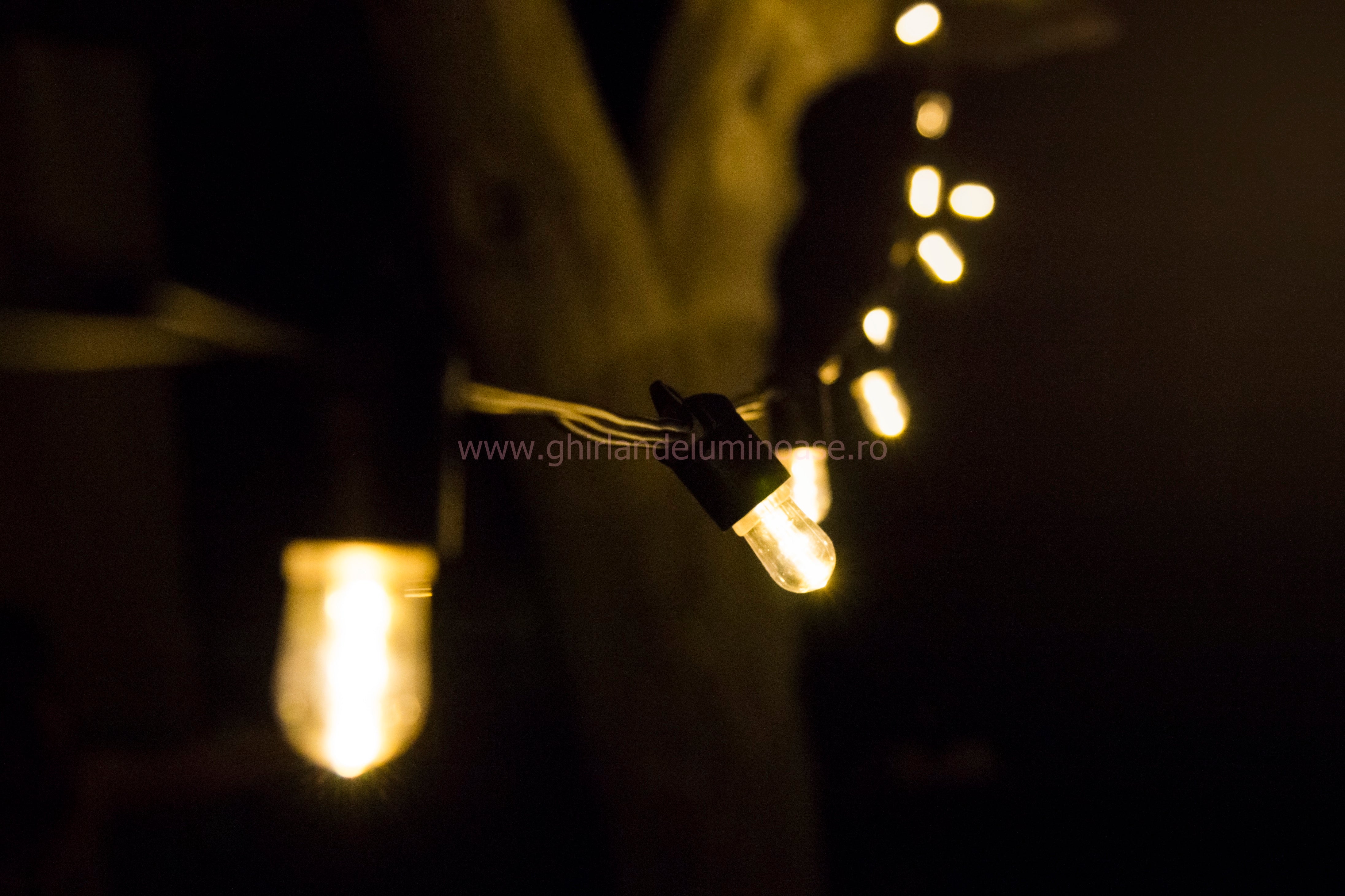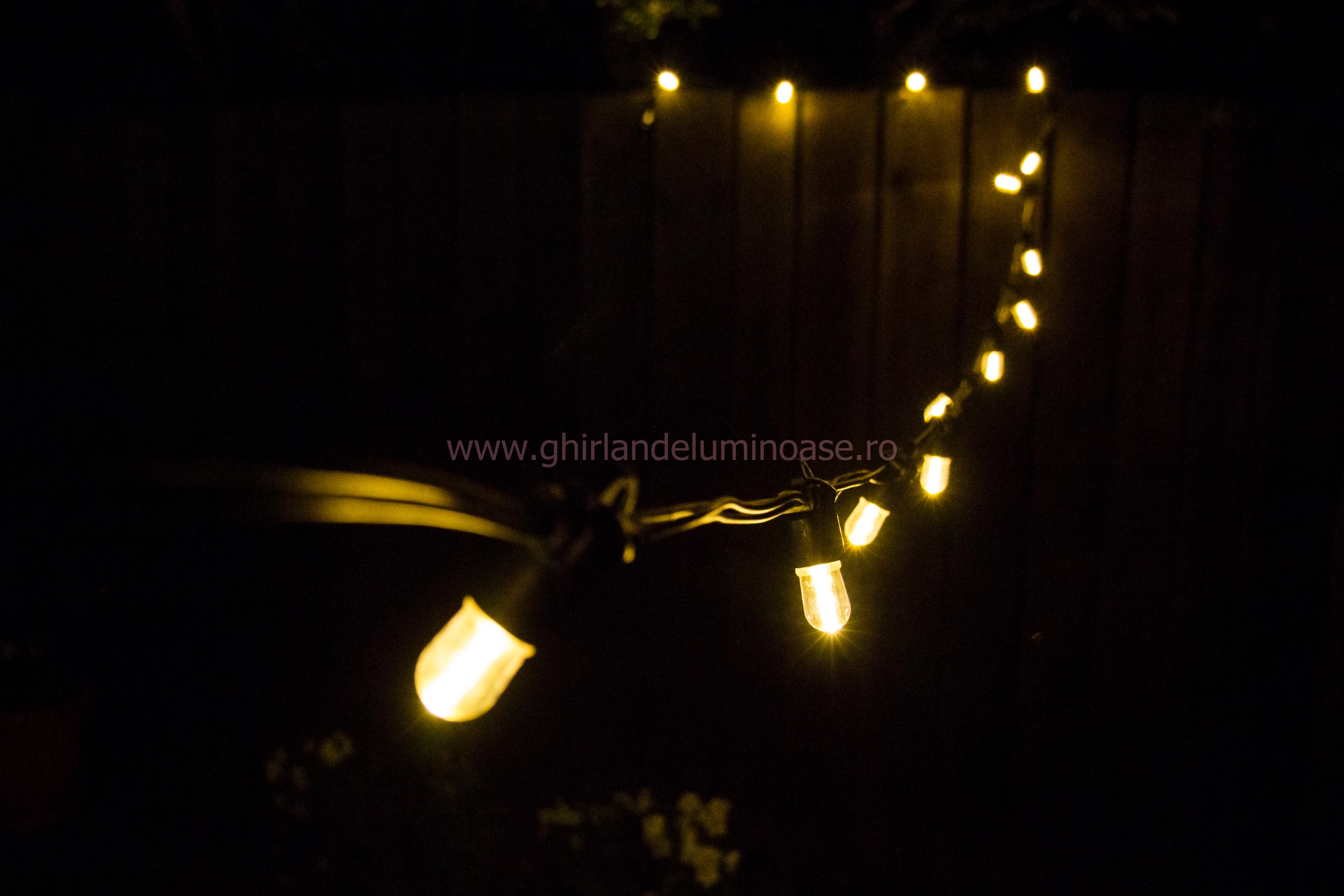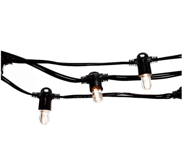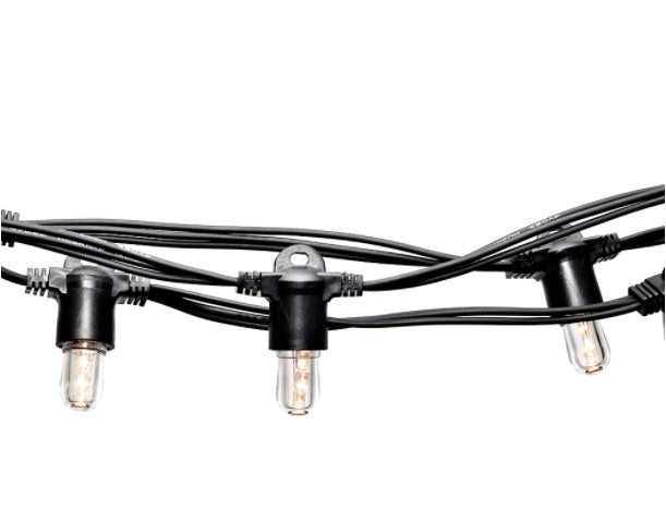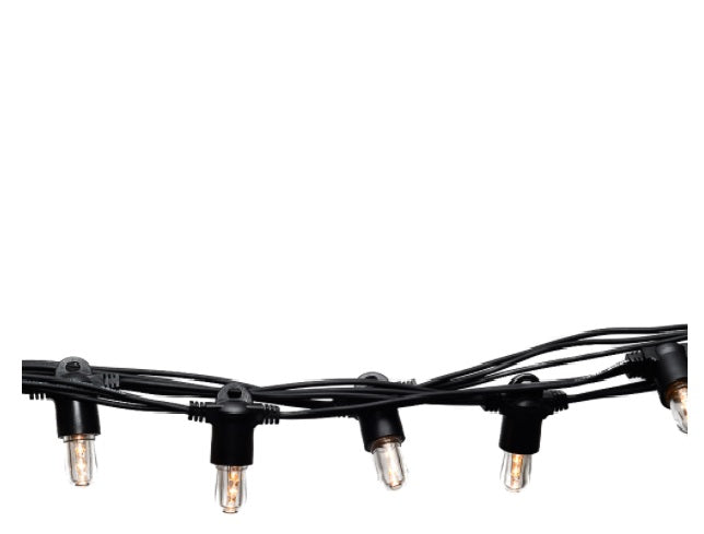 Lichterkette 5M mit 20 LED-Birnen E14, Schwarzes Kabel, Warm Licht, Verbindbar 50M, für Außen
