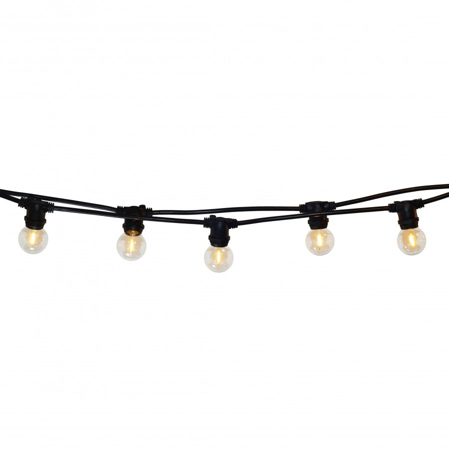 Lichterkette 5M mit 20 LED-Lampen Filament ''I'', E14, 0.5W, Schwarzes Kabel, Verbindbar 250M, für Außen