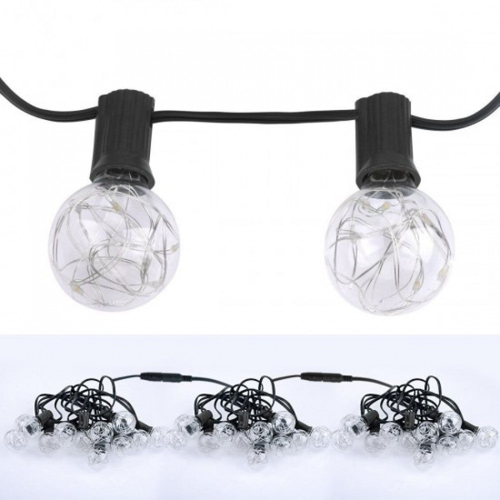 Lichterkette 8,7M mit 30 LED Lampen + 3 Geschenk, E12, Schwarzes Kabel, Warm Licht, für Außen