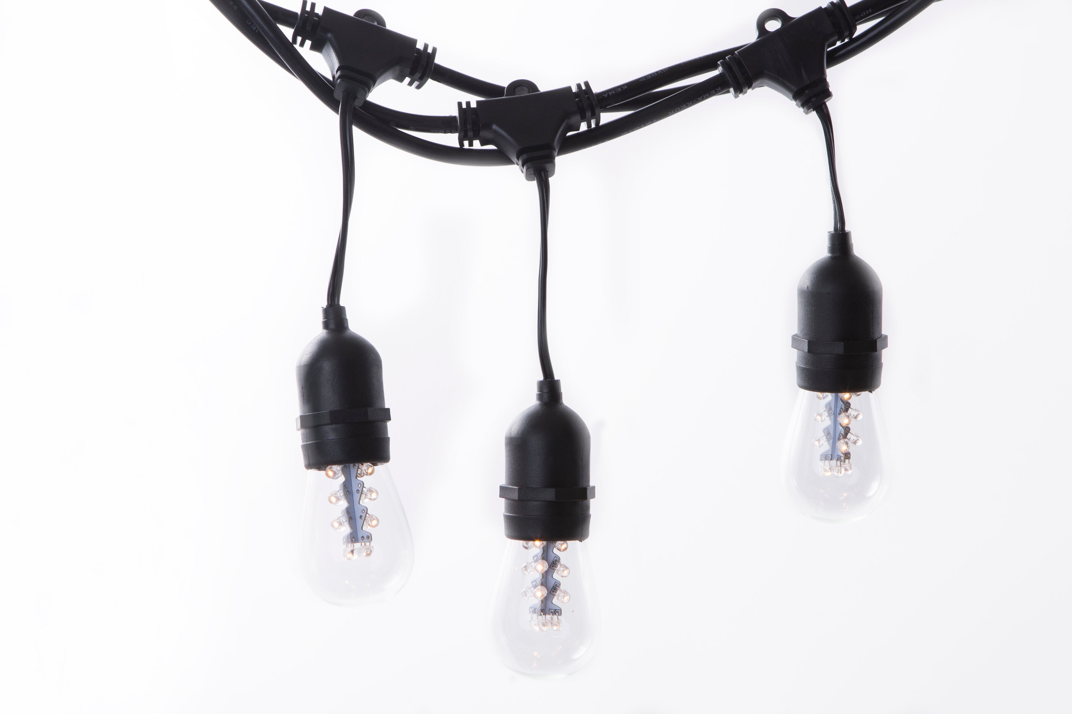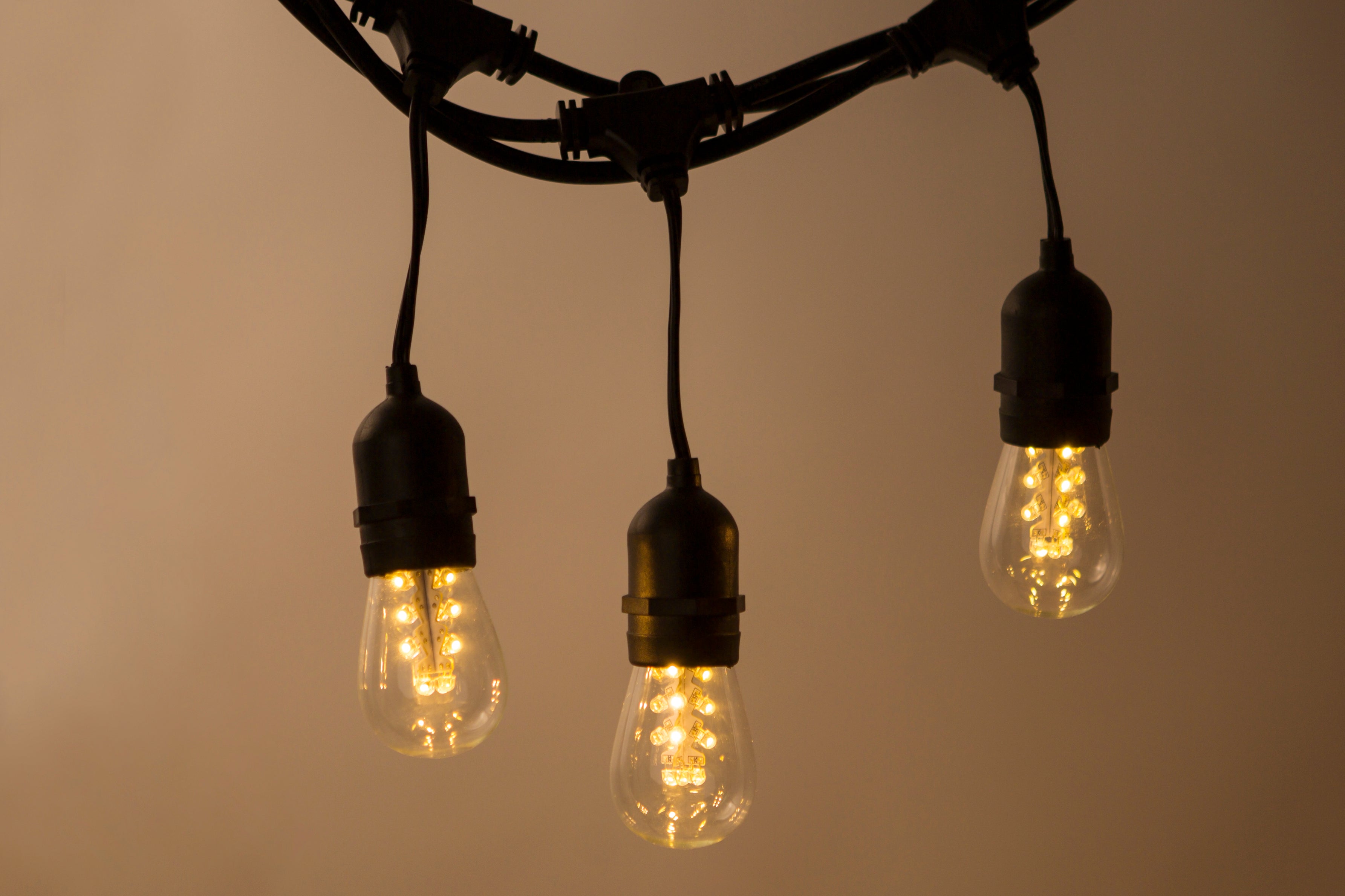 Lichterkette mit Pendel 10M mit 20 Birnen mit 16 LEDs, E27, 2W, Dimmbar, Schwarzes Kabel, Verbindbar 250M, für Außen