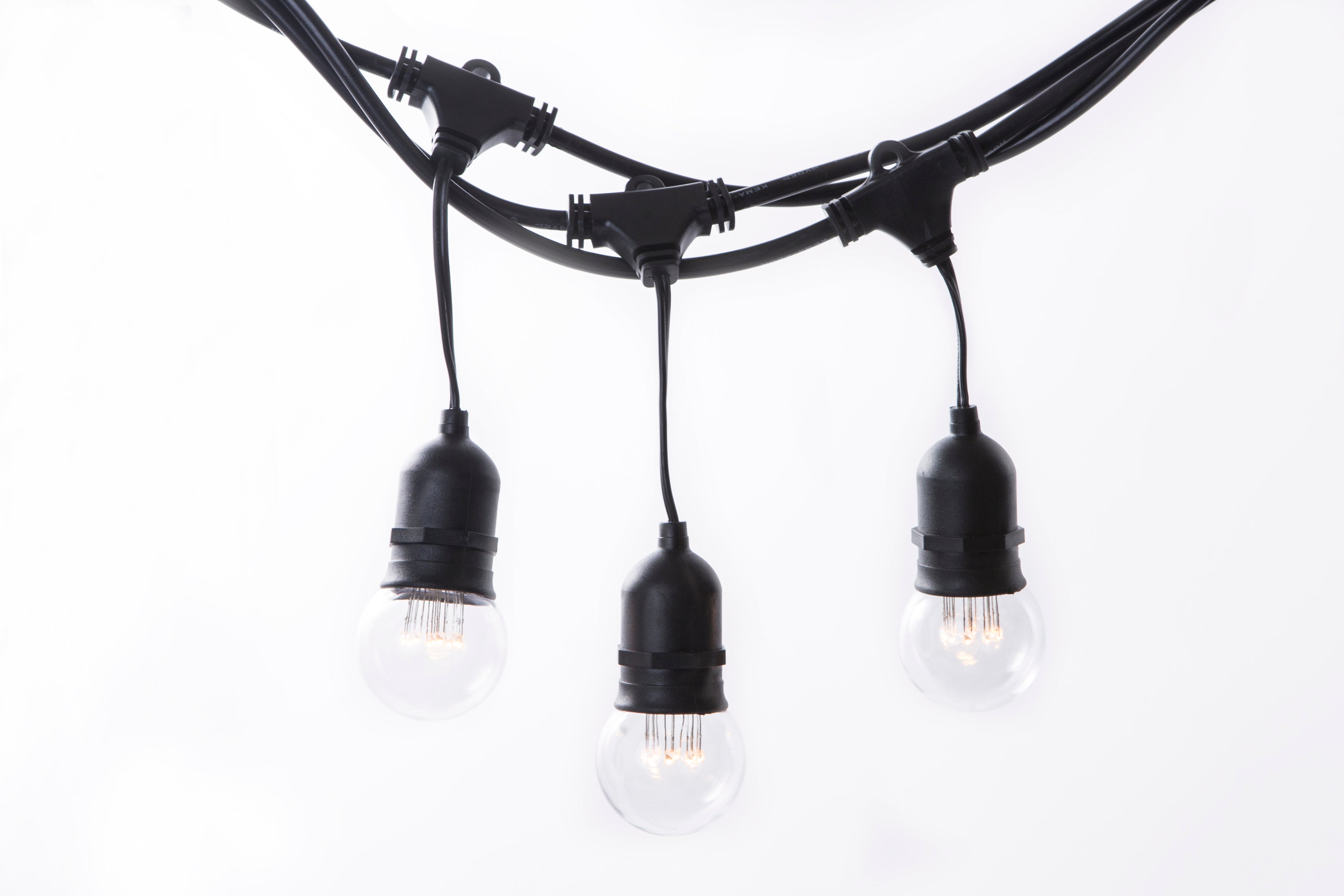 Lichterkette mit Pendel 10M mit 20 Klar Lampen mit 9 LEDs, E27 1W, Dimmbar, Schwarzes Kabel, Warm Licht, Verbindbar 500M, für Außen