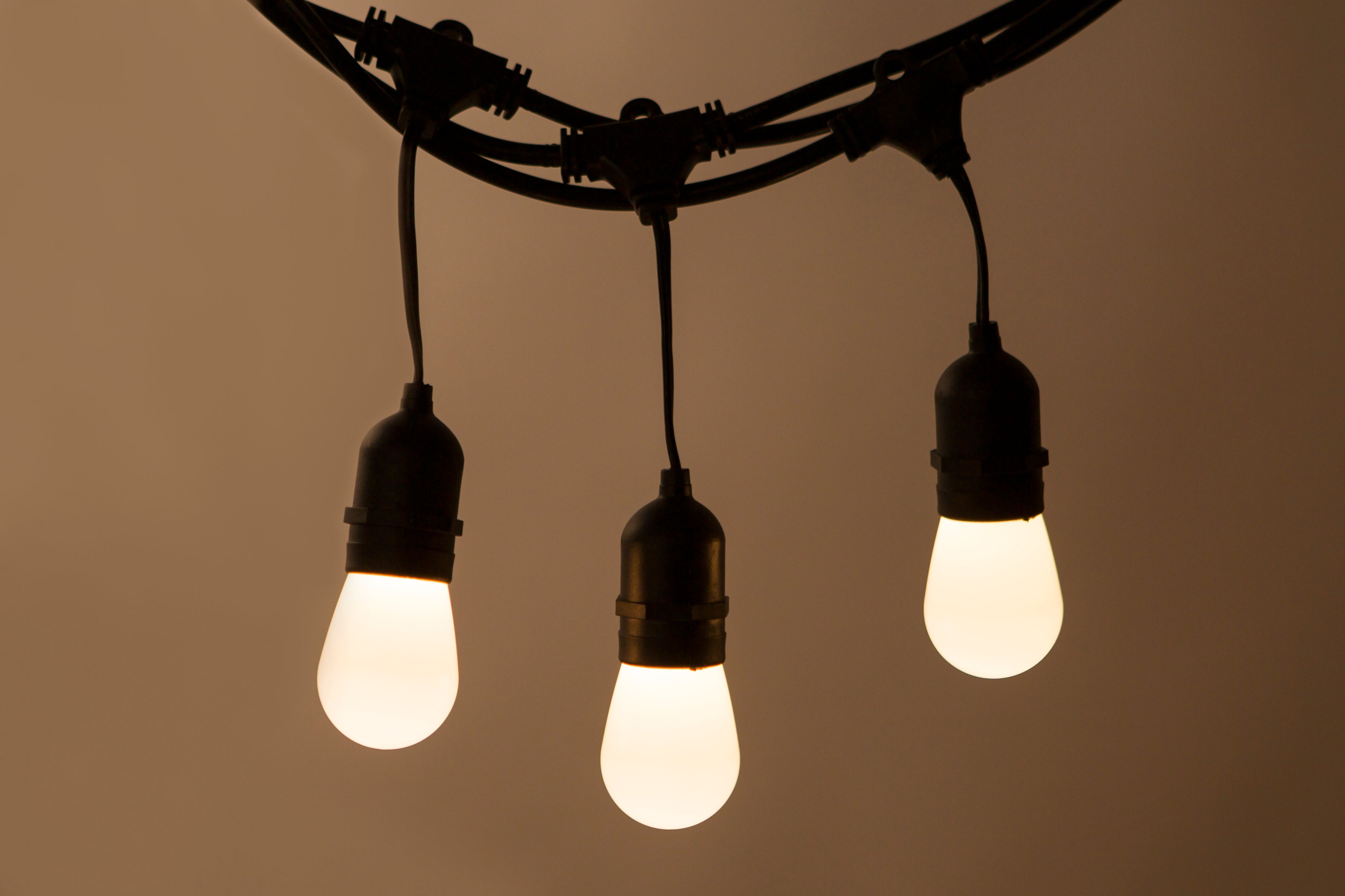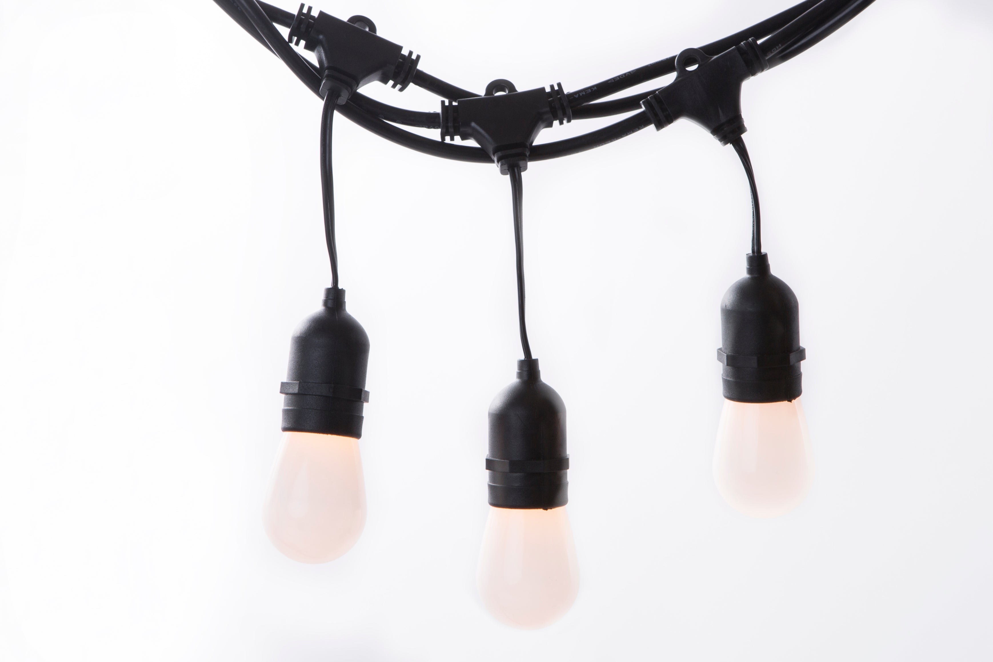 Lichterkette mit Pendel 10M mit 20 Mattweiß Birnen-LEDs, E27 1W, Dimmbar, Schwarzes Kabel, Warm Licht, Verbindbar 500M, für Außen- Standardlänge:... Lesen Sie mehr
