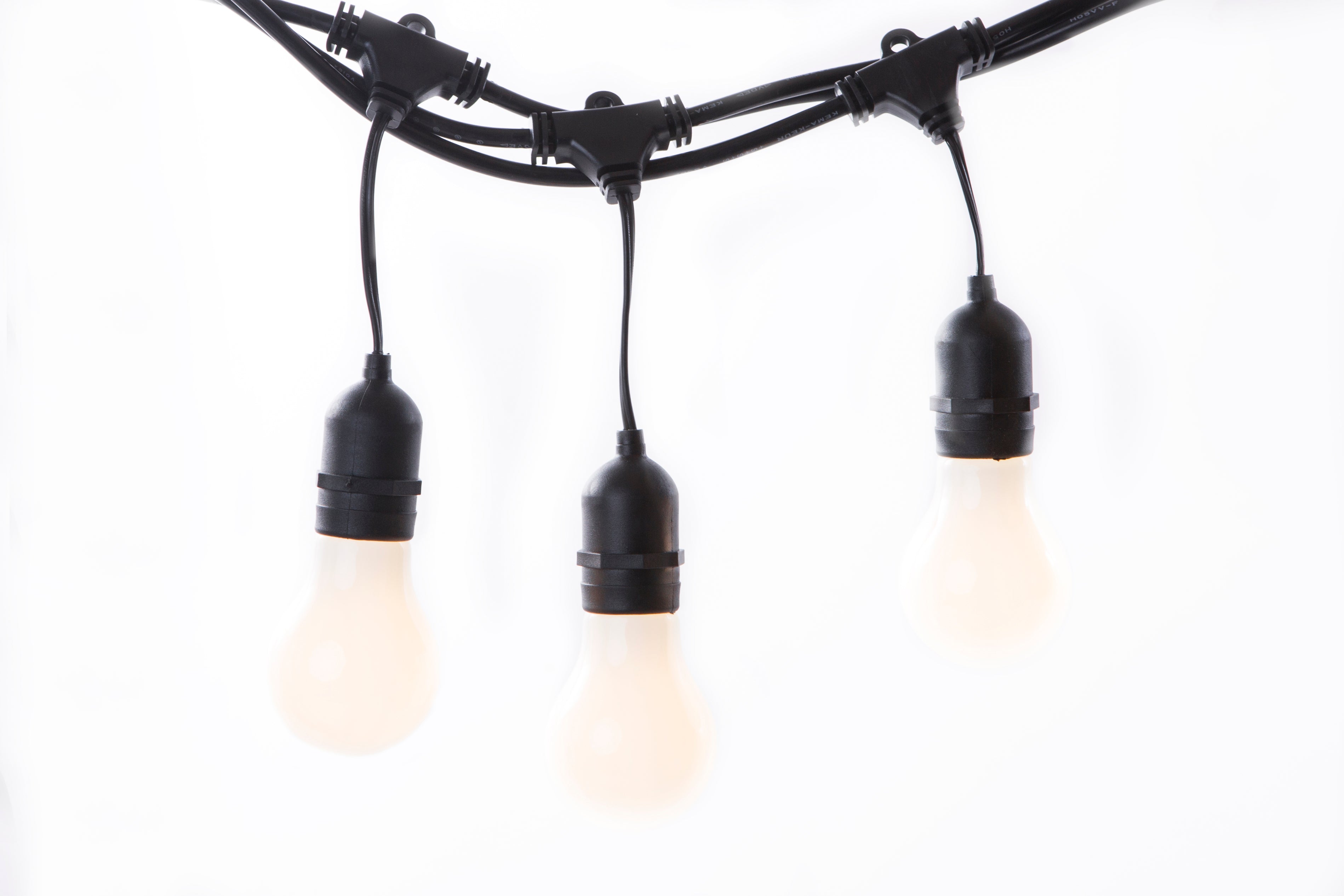 Lichterkette mit Pendel 10M mit 20 Mattweiß LED-Birnen, E27, 4W, Glas, Dimmbar, Schwarzes Kabel, Verbindbar 120M, für Außen