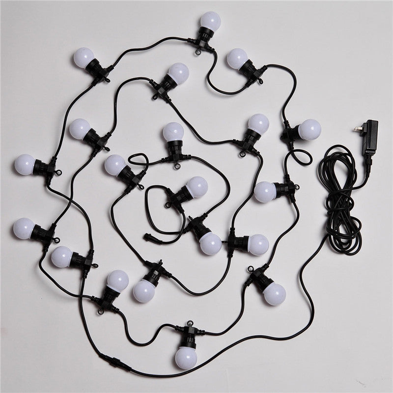 Lichterkette zu vermieten 10M mit 20 Klar Glühlampen-LEDs, Schwarzes Kabel, Warm Licht, Verbindbar 50M, für Außen
