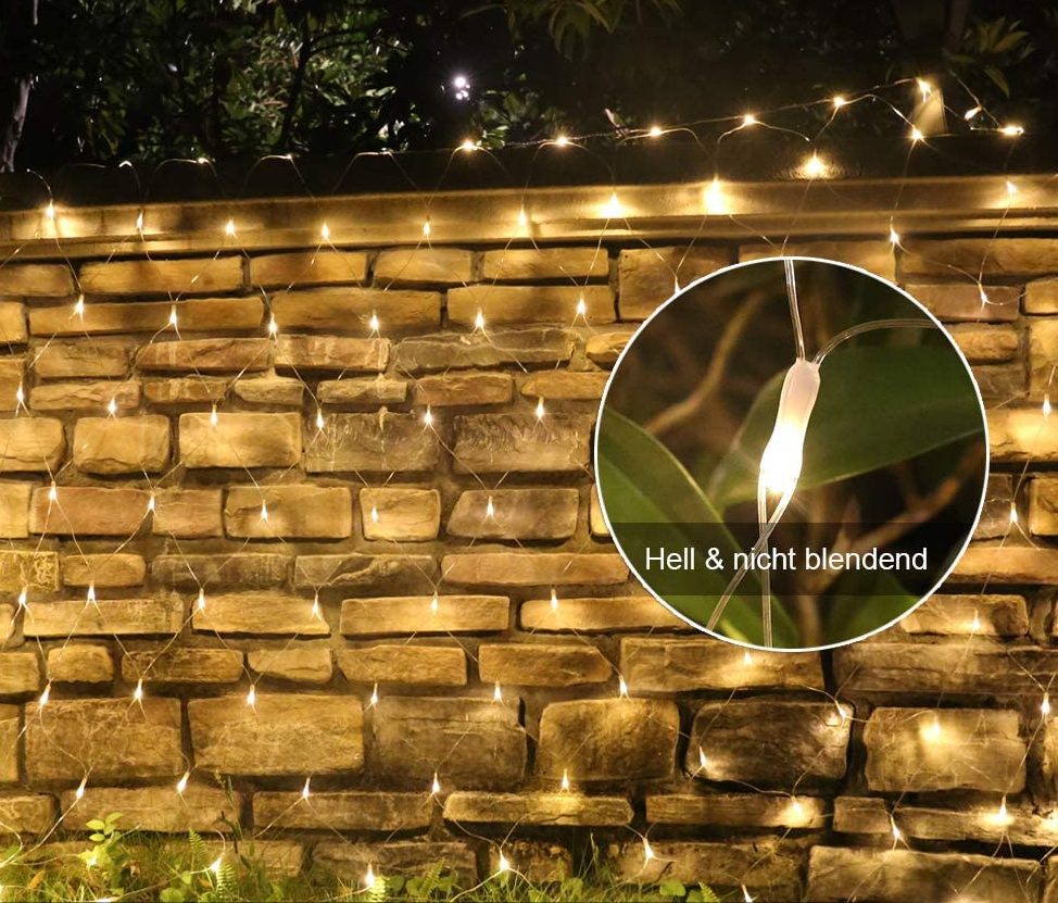 Lichternetz 4.5 x 1.6M mit 300 LEDs, mit 8 Programmen, Durchsichtig Kabel, Warm Licht, Verbindbar 13.5M, für Außen