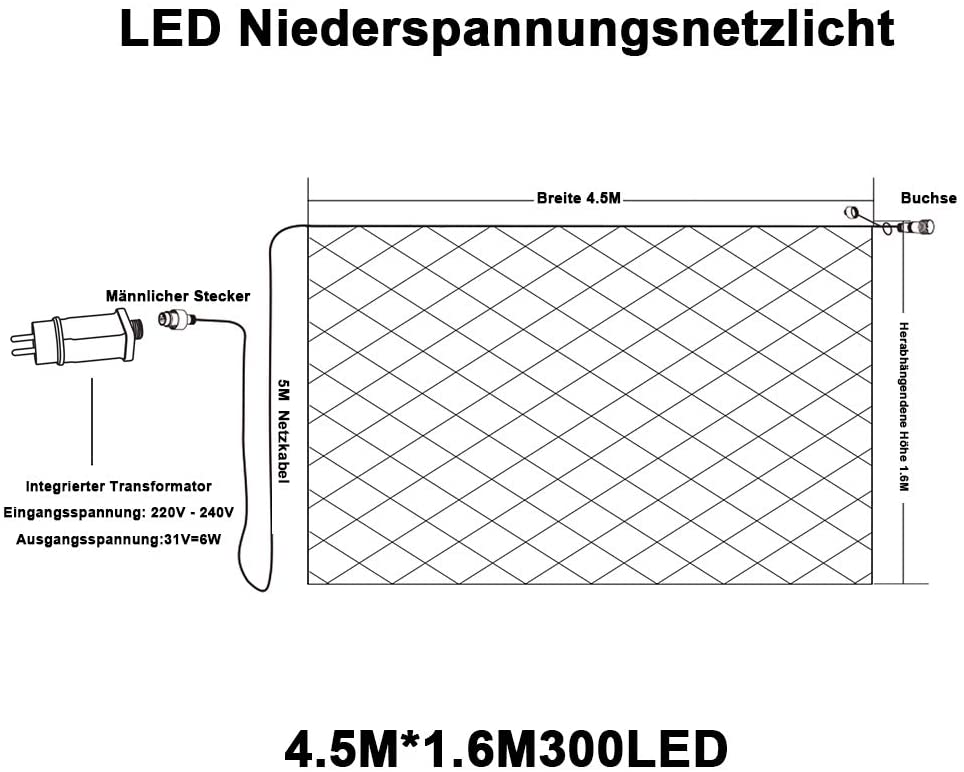 - Länge der Lichterkette: 4,5m x 1,6m