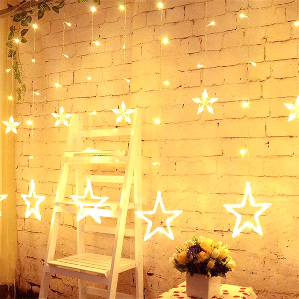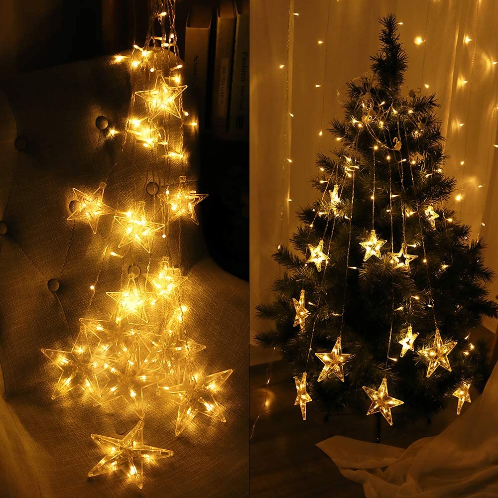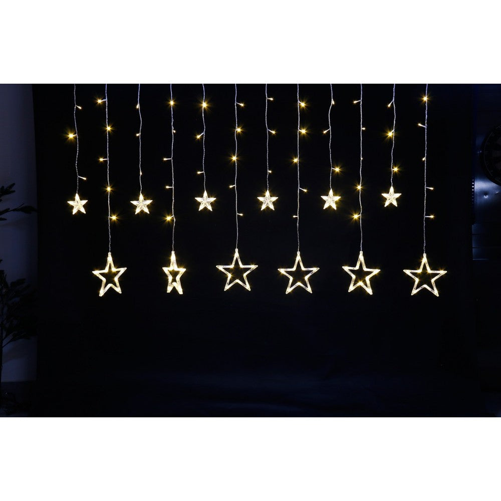 Lichtervorhang 2,5M mit 12 Sternen mit 128 LEDs, Warm Licht, Verbindbar 12,5M für Außen