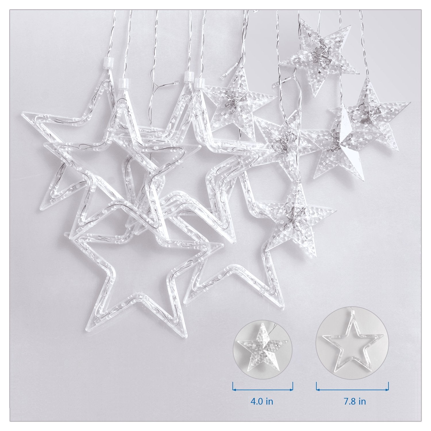 Lichtervorhang 2,5M mit 12 durchsichtig Sternen mit 128 LEDs, Warm Licht, Verbindbar 12,5M für Außen- Standardlänge: 2,5 m (+~1,5 m... Lesen Sie mehr