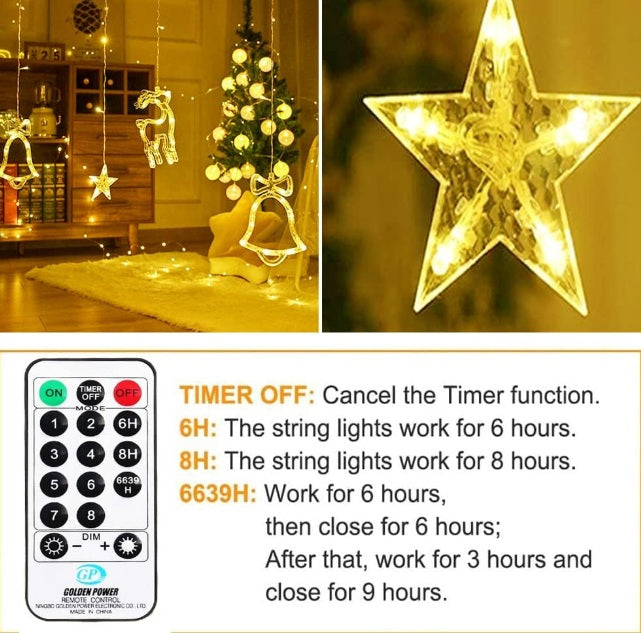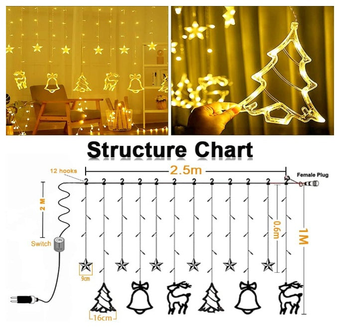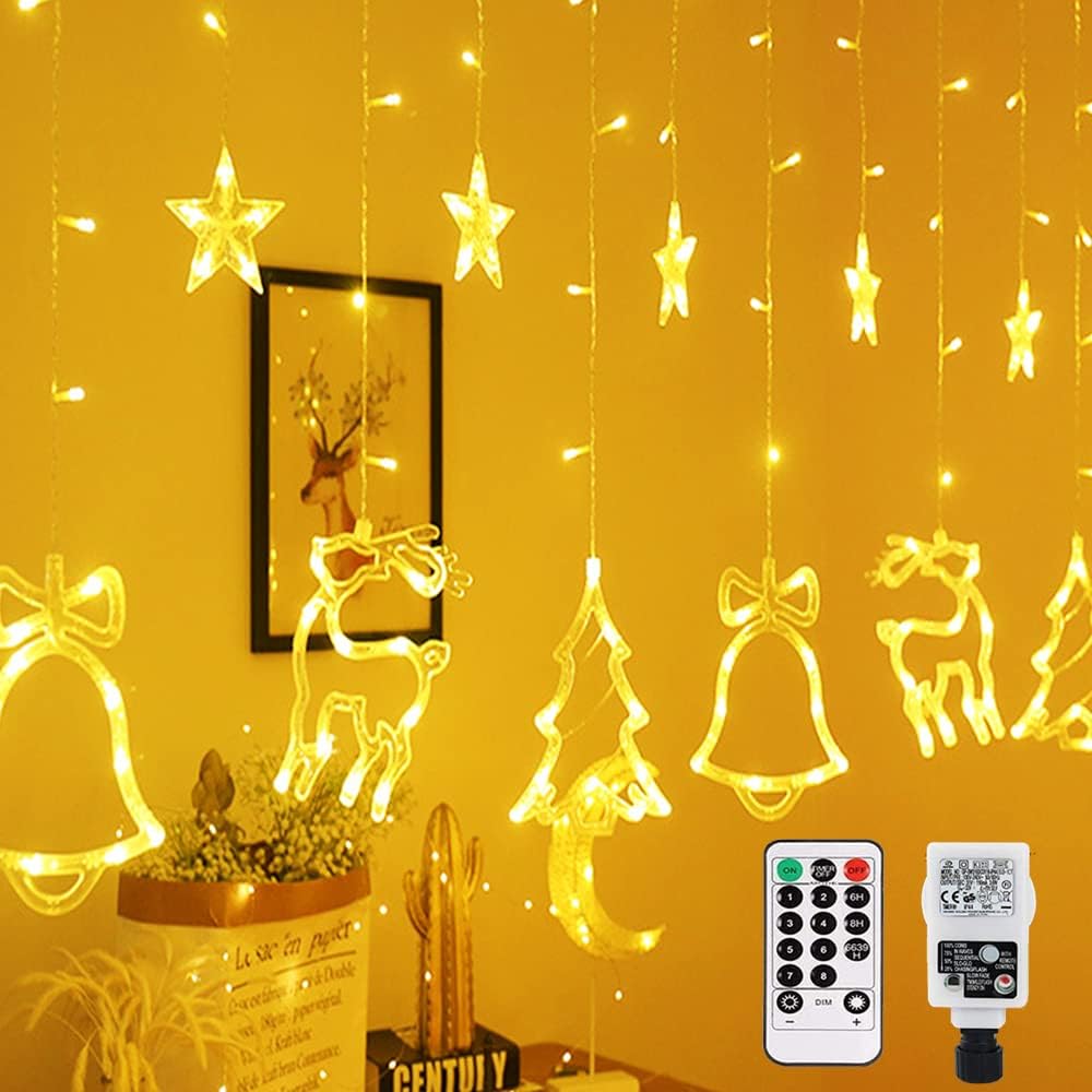 Lichtervorhang 2,5M mit 138 LEDs Sterne & Weihnachtsmuster Deko, Durchsichtig Kabel, Verbindbar 7,5M, für Außen