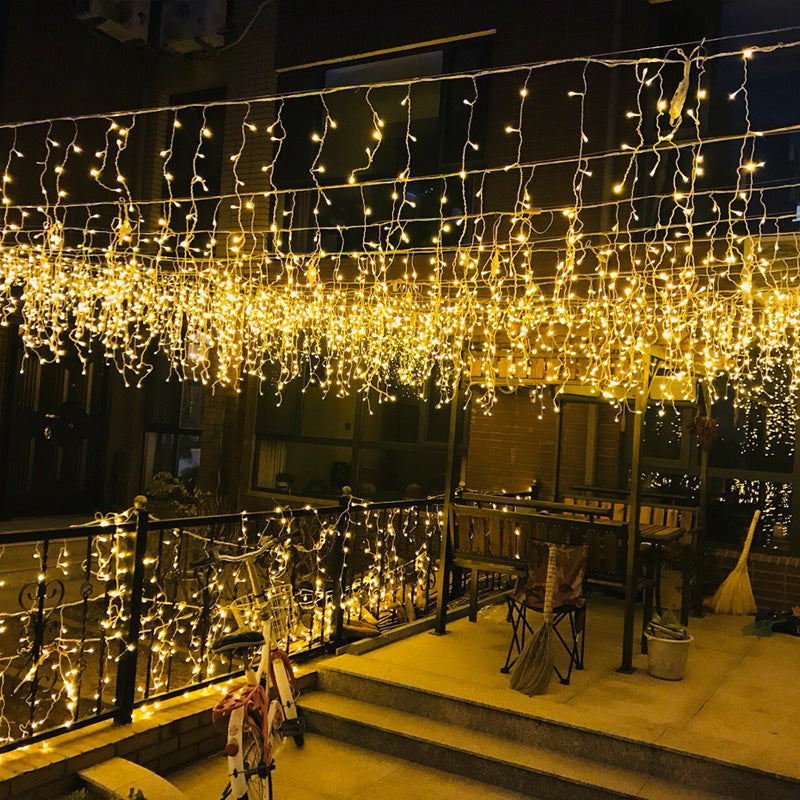 Lichtervorhang 3M × 1M mit 150 Premium-LEDs, Durchsichtig Kabel, Warm Licht, Verbindbar 15M, für Außen
