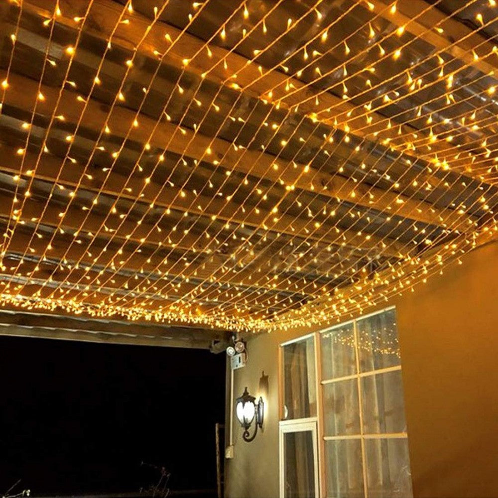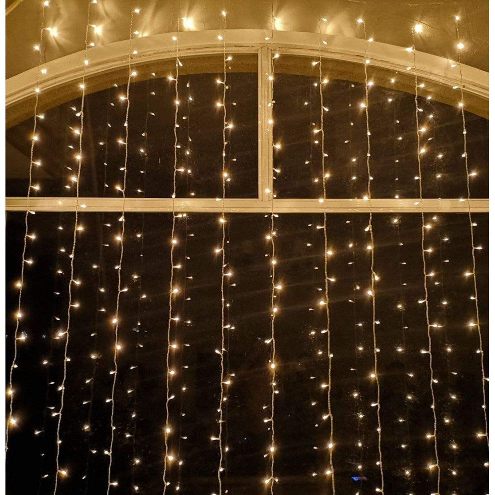 Lichtervorhang 3M × 3M mit 300 Premium-LEDs, Durchsichtig Kabel, Warm Licht, Verbindbar 15M, für Außen