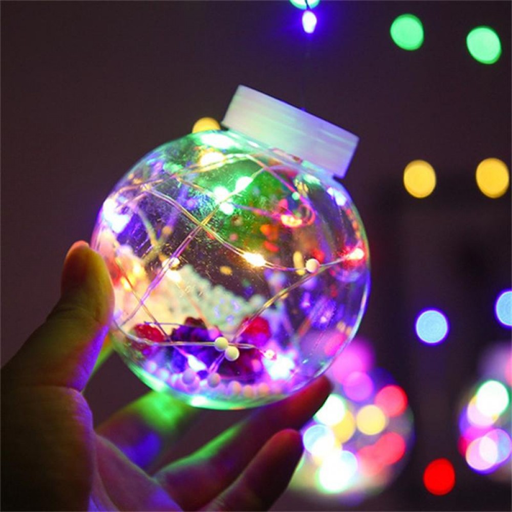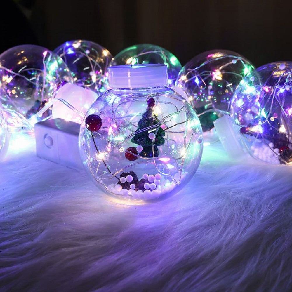 Lichtervorhang 3M mit 10 Große Kugeln mit Tannenbäumen darin, Silberkupfer Draht, Mehrfarbige Licht RGB, Verbindbar 15M, für Außen